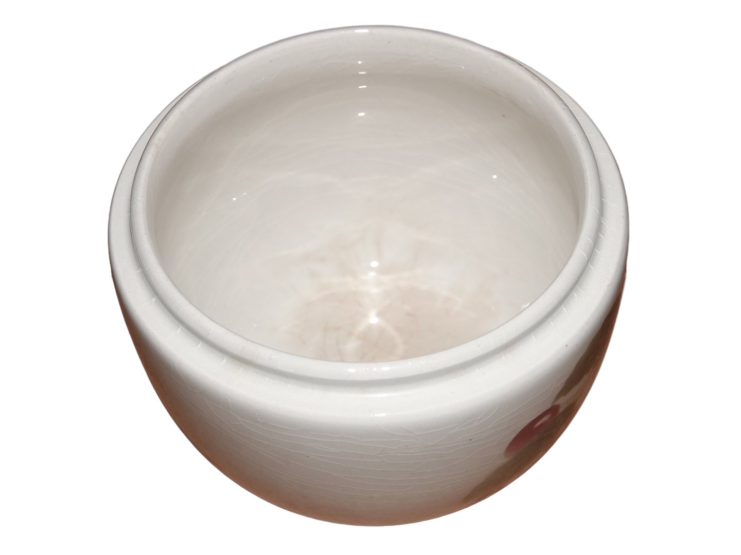 Låget har et stort skår og der er lidt misfarvninger i glasuren på underdelen, se venligst fotos, men ellers fejlfri stand.