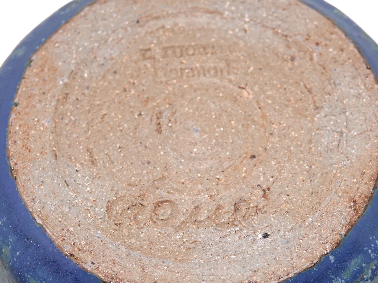 Hjorth keramik fra Bornholm, blå vase signeret "Lone". Højde 12,0 cm. Der er lidt indvendig kalk ellers perfekt stand uden fejl.