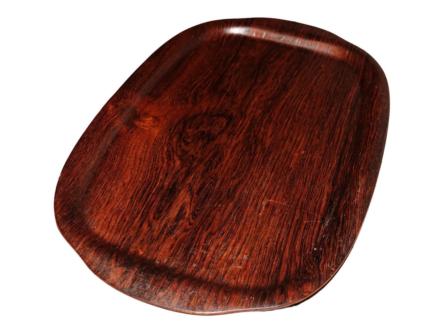 Dansk palisanderfiner serveringsbakke udført hos Morsbak omkring 1950 til 1960.