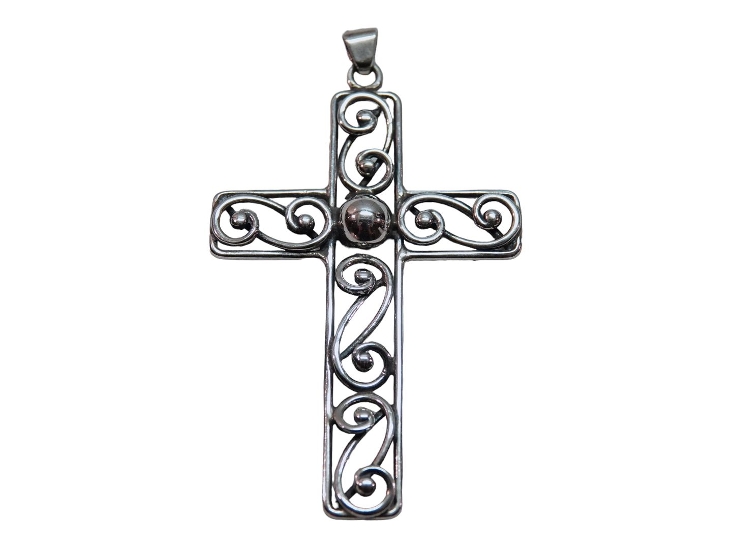 Stort vedhæng i sølv, kors fra 1950-1960. Stemplet "830S". Vedhænget måler 6,5 x 4,5 cm. Fin, velholdt stand.