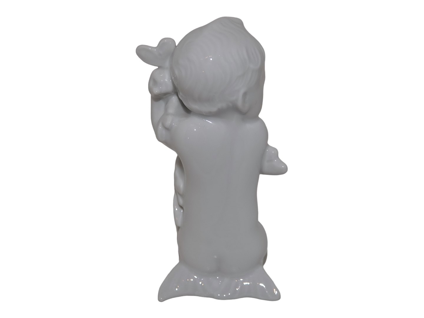 Hvid Bing & Grøndahl figur, havbarn. Fra serien Havbørn. Fabriksmærket viser, at denne er fra mellem 1970 og $1983. Dekorationsnummer 2267. 1. sortering. Højde 11,5 cm. Perfekt stand uden fejl.