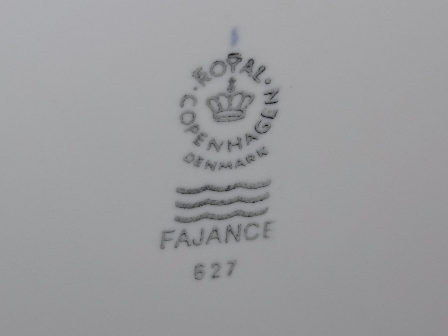 Royal Copenhagen Ursula, stor rund middagstallerken. Designet af Ursula Munch-Petersen. Dekorationsnummer 627. 1. sortering. Diameter 27,0 cm. Der er lidt overfladeridser i glasuren ellers perfekt stand.
