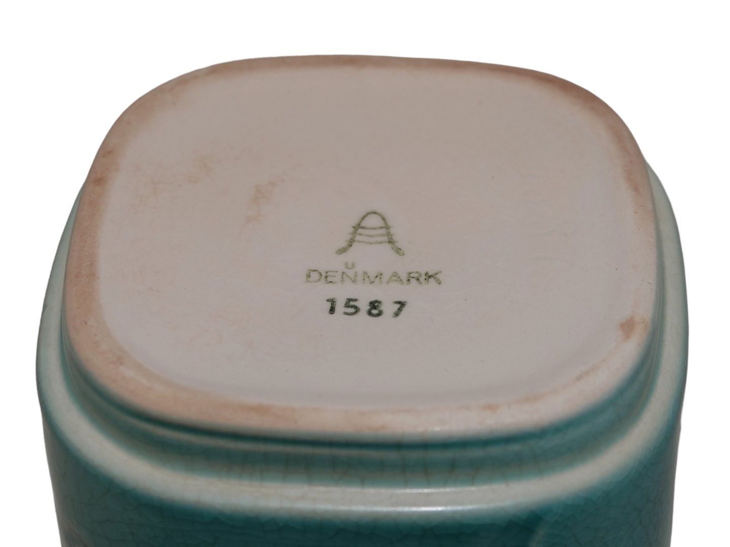 Aluminia Solbjerg kunstfajance, grønt bæger med fisk.