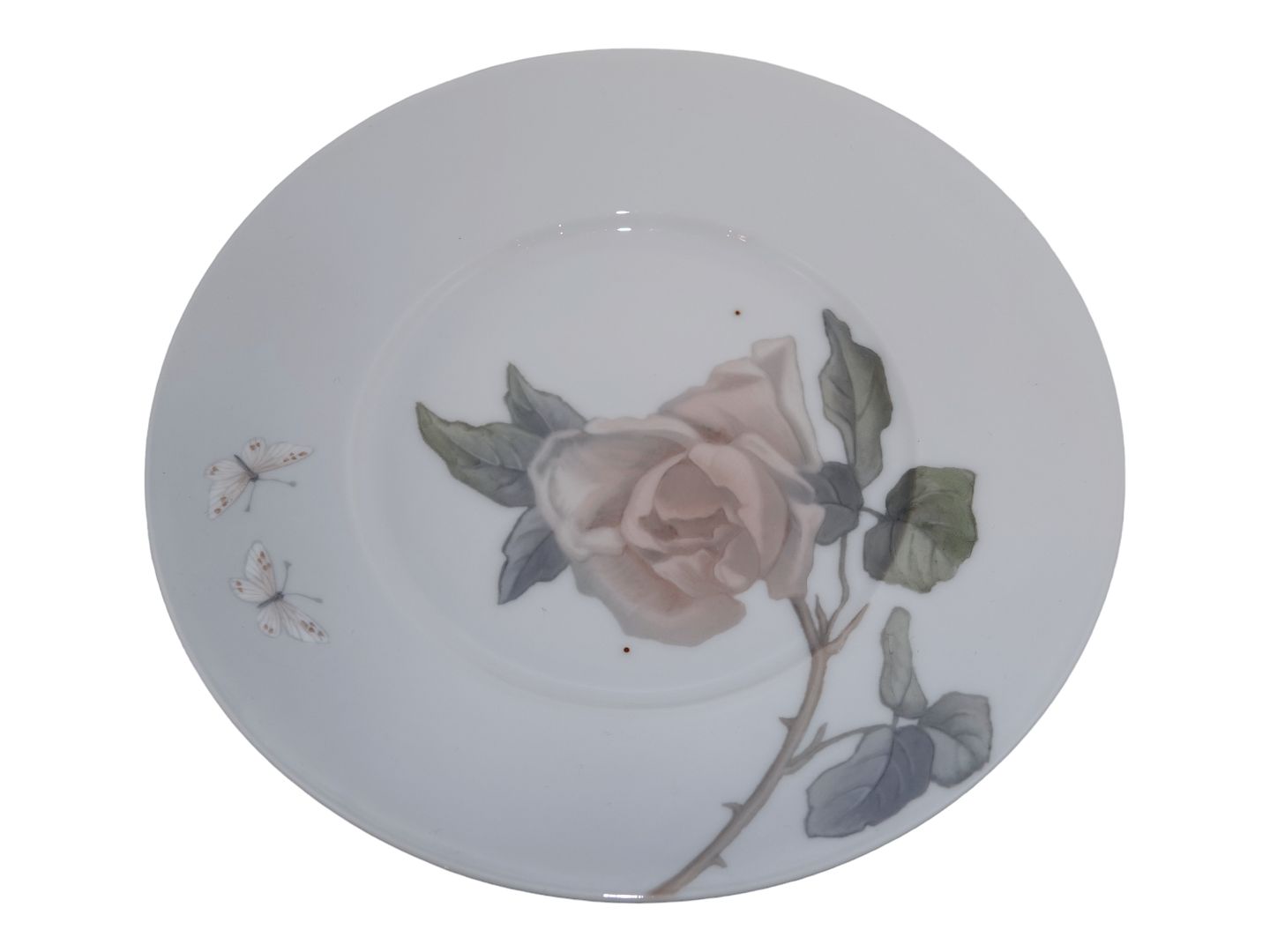 Royal Copenhagen Art Nouveau luncheon plate decorated with a flower and butterflies.