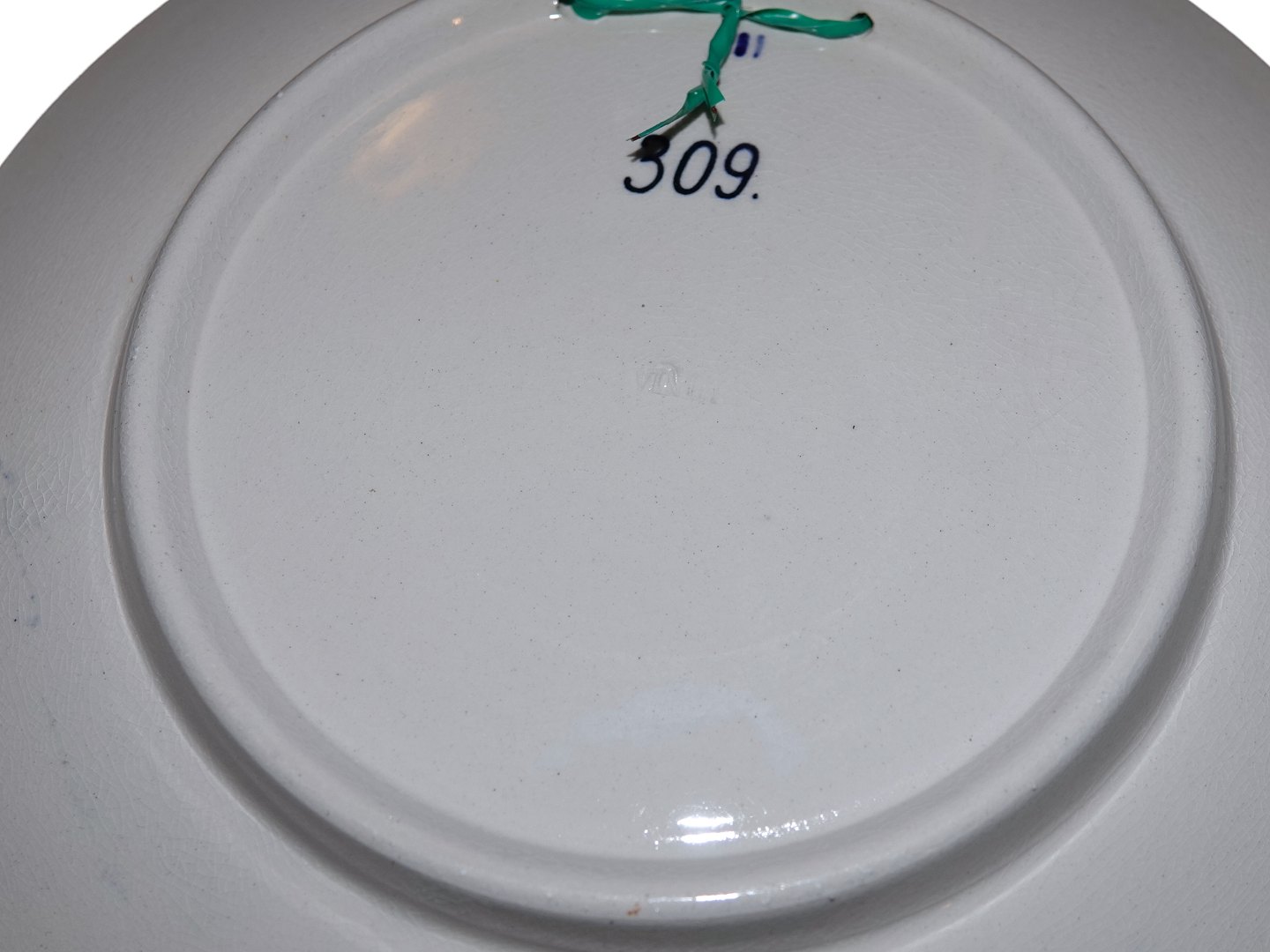 Har "ALUMINIA" indpresset i glasuren på bagsiden.