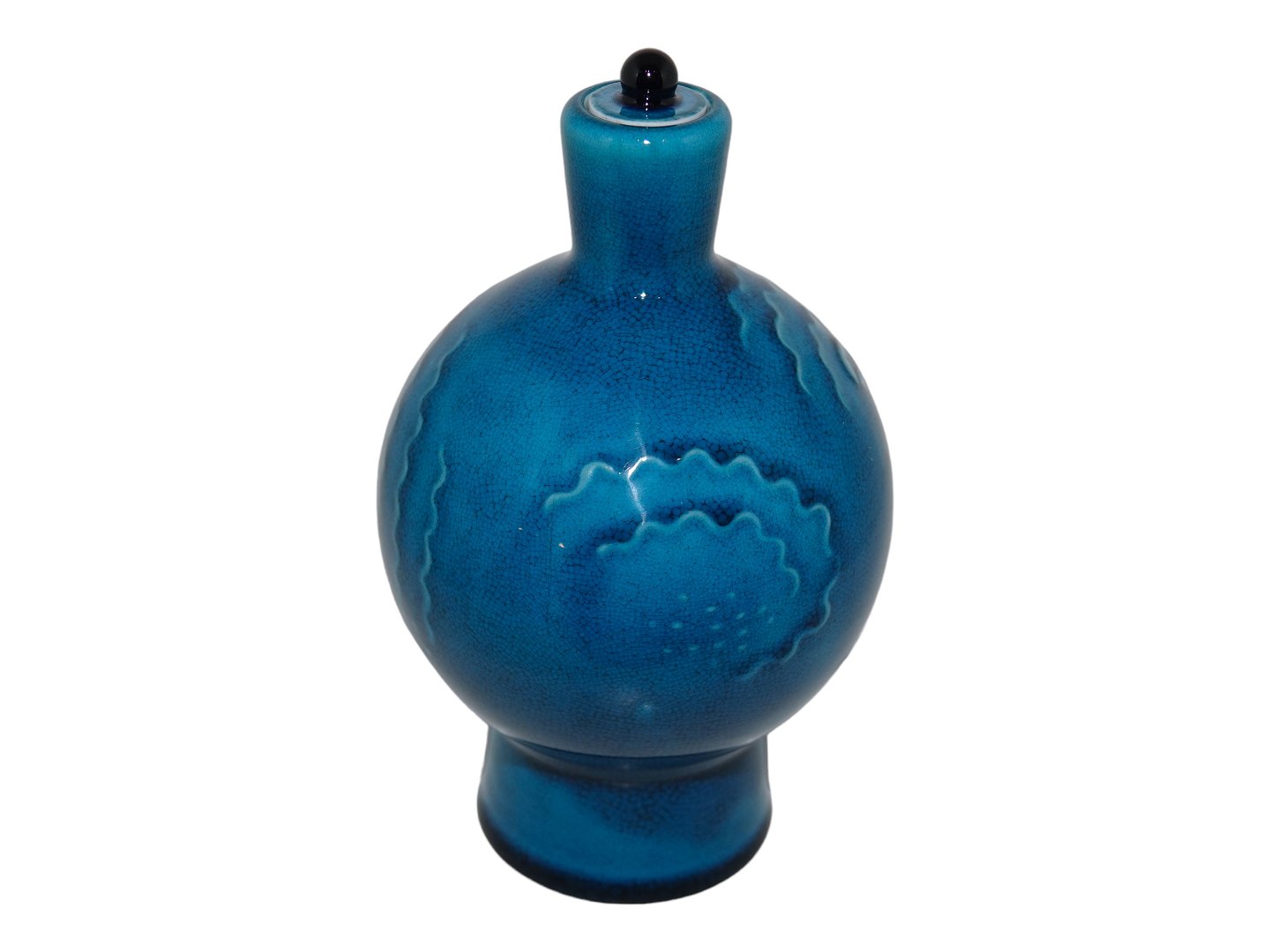 Bing & Grøndahl kunstporcelæn Art Deco blå flakon med låg dekoreret med en skildpadde.