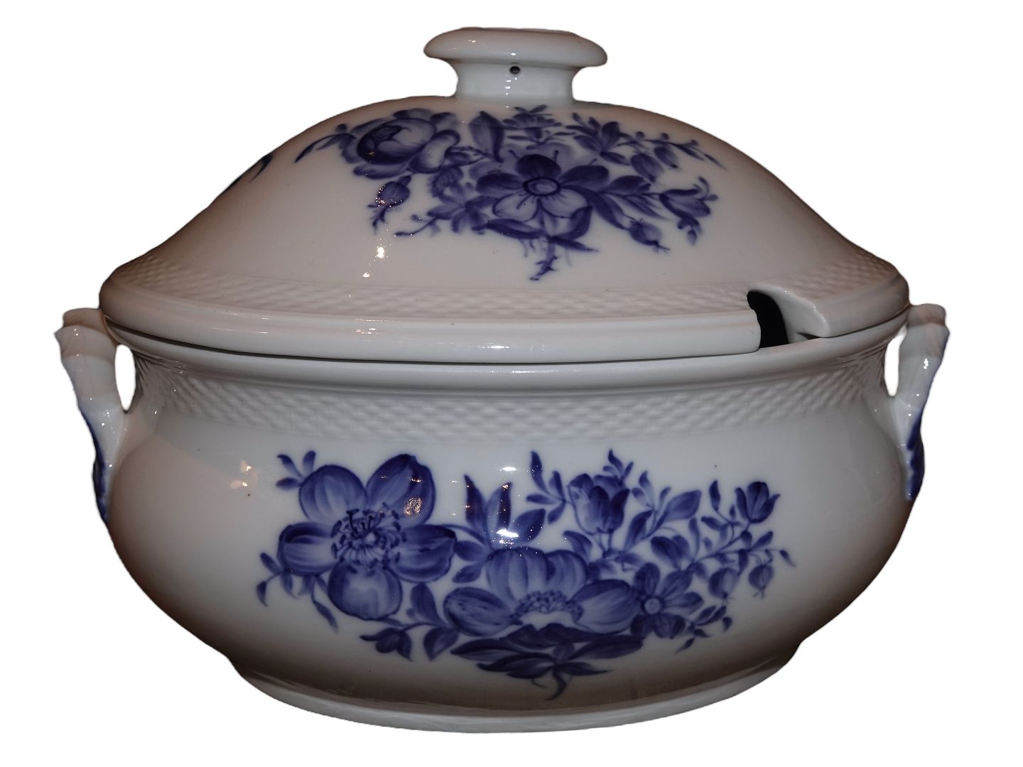 Royal Copenhagen Blå Blomst Flettet, stor suppeterrin med sjælden lågknop.