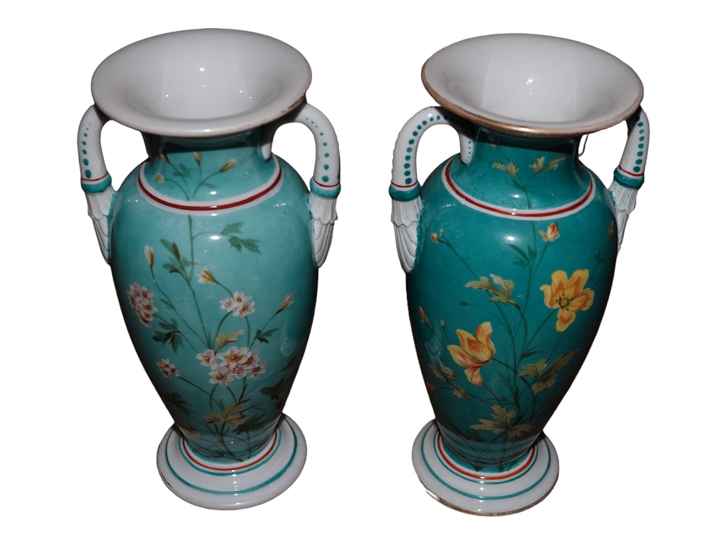 Par Royal Copenhagen tidlige grønne vaser. Den ene vase er noget lysere i den grønne farve end den anden.