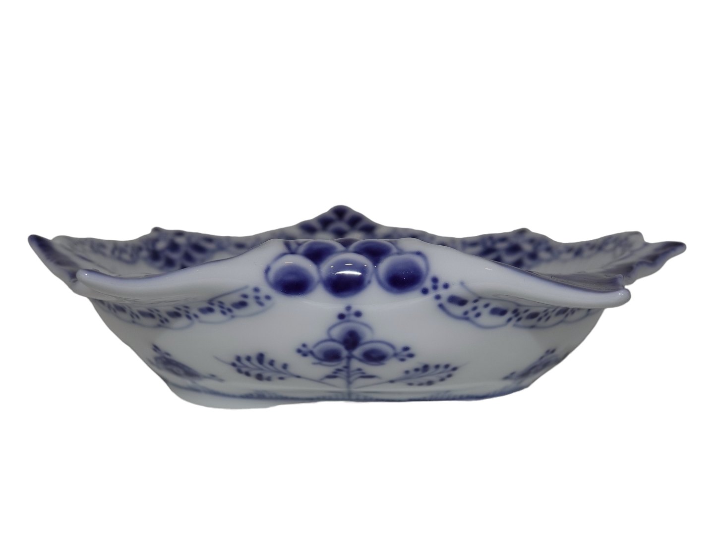 Royal Copenhagen Musselmalet Halvblonde, kageskål. Fabriksmærket viser, at denne er produceret i 1963. Dekorationsnummer 1/557. 1. sortering. Måler 19,0 x 18,5 cm. Perfekt stand uden fejl.
