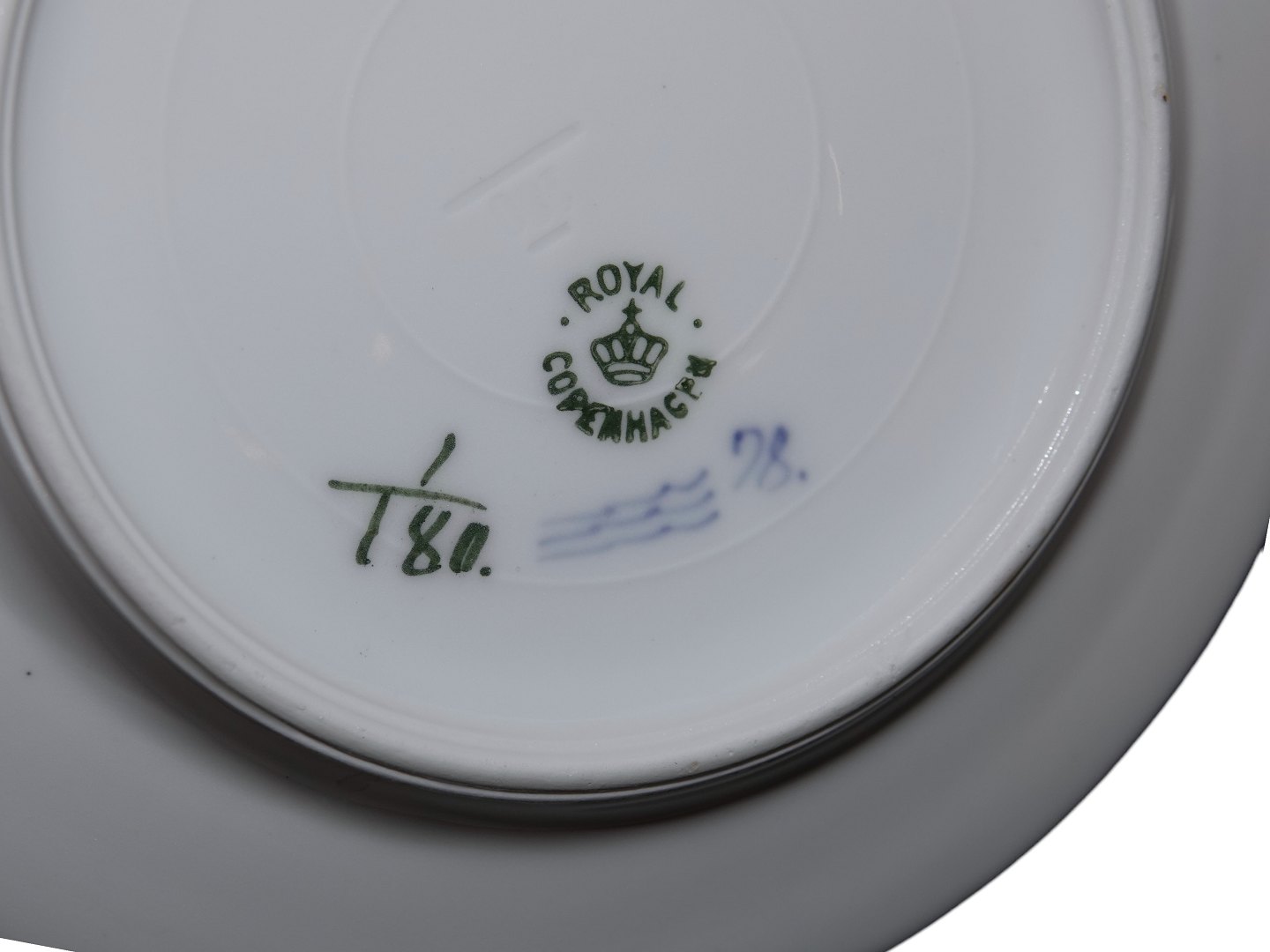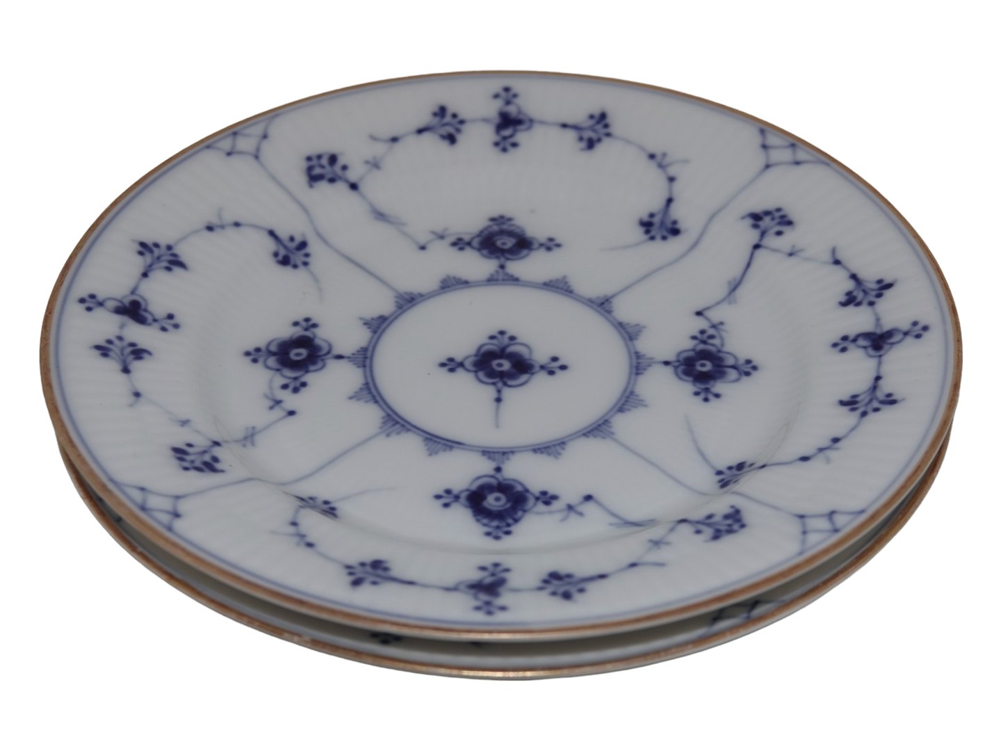 Royal Copenhagen Musselmalet Riflet med guldkant, stor kagetallerken.