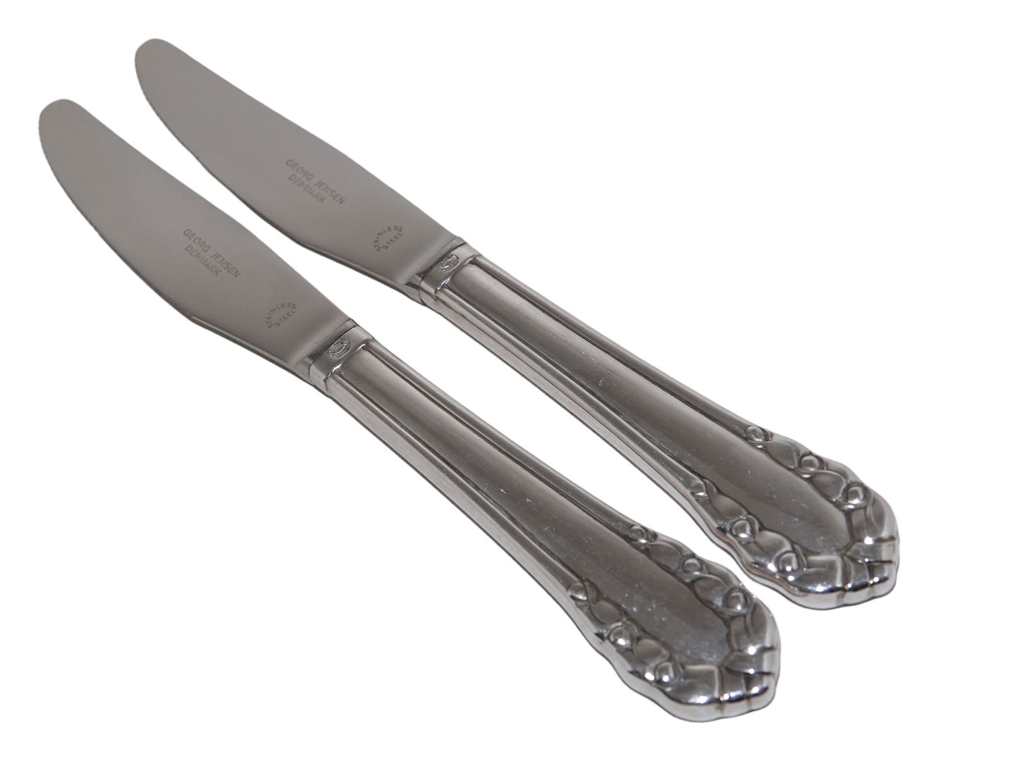 Georg Jensen Lile of the Valley sterling silver and stainless steel, luncheon knife with short knife blade.