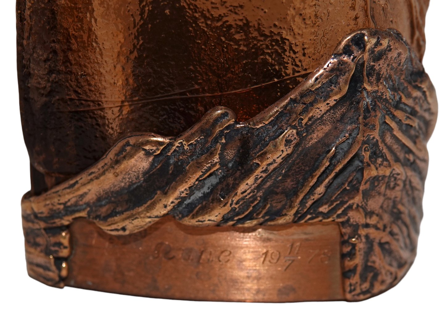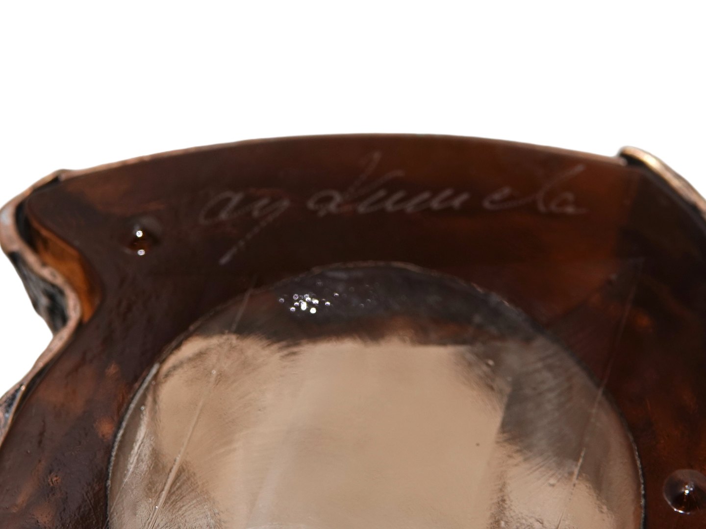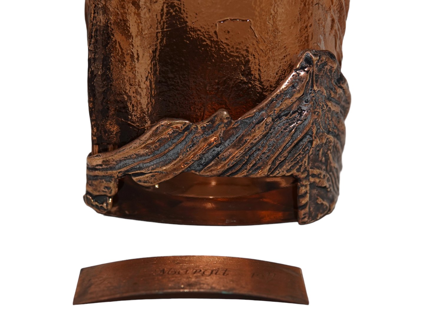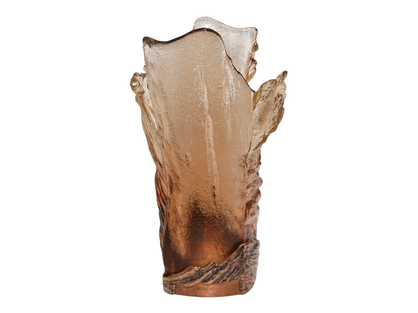 Oy Kumula Finland, vase with brass mounting by Pentti Sarpaneva. Fully signed "Oy Kumula" and "Pentti Sarpaneva". Height 21.1 cm. The brass mounting has two labels also in brass. These are engraved. Perfect condition.