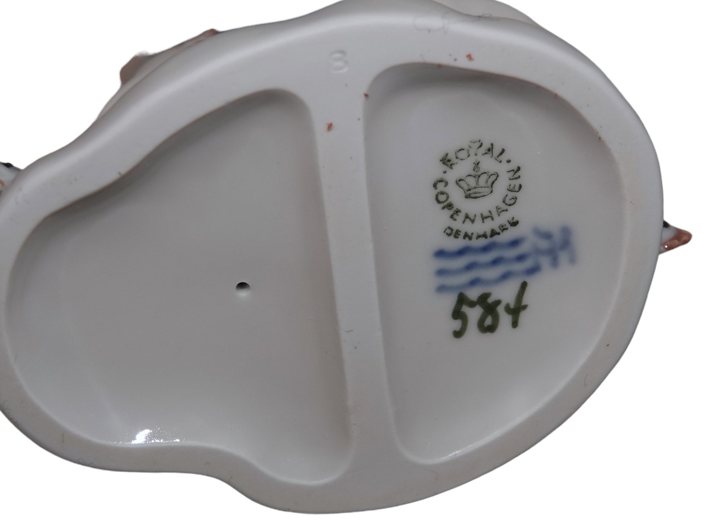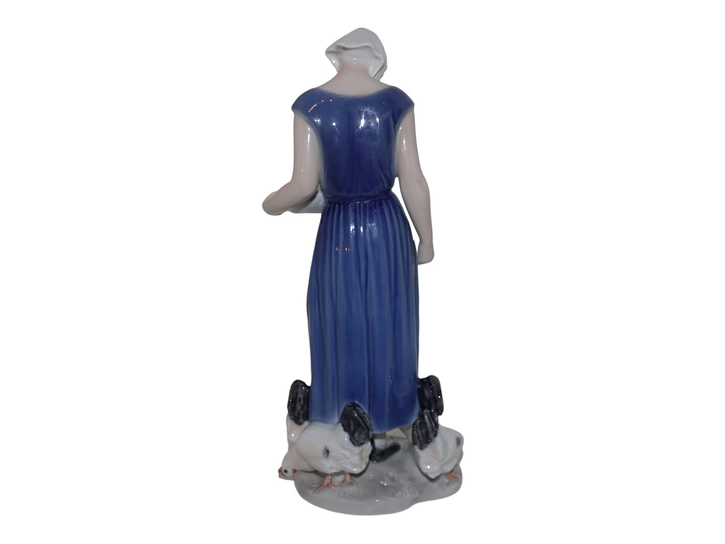 Royal Copenhagen figur, bondepige med høns. Af fabriksmærket ses det, at denne er produceret i mellem 1992 og 1999. Dekorationsnummer 584. Medarbejdersortering. Højde 23,0 cm. Perfekt stand uden fejl.