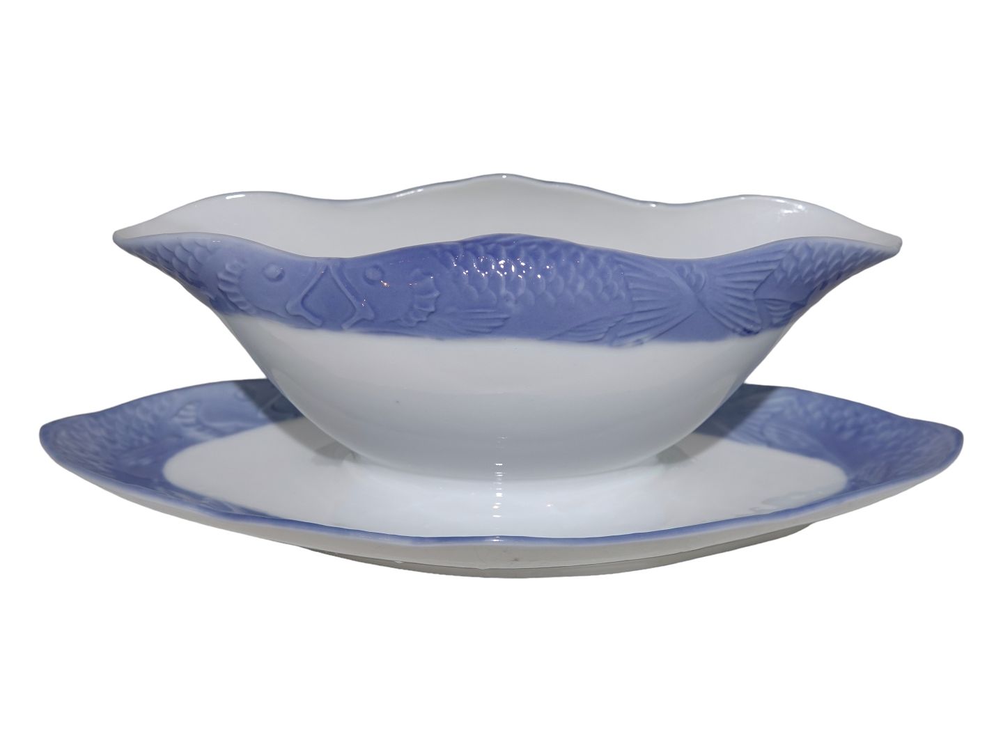 Royal Copenhagen Art Nouveau Fiskestel, sovseskål. Fabriksmærket viser, at denne er fra mellem 1894 og 1897. 1. sortering. Længde 26,0 cm. Perfekt stand uden fejl.