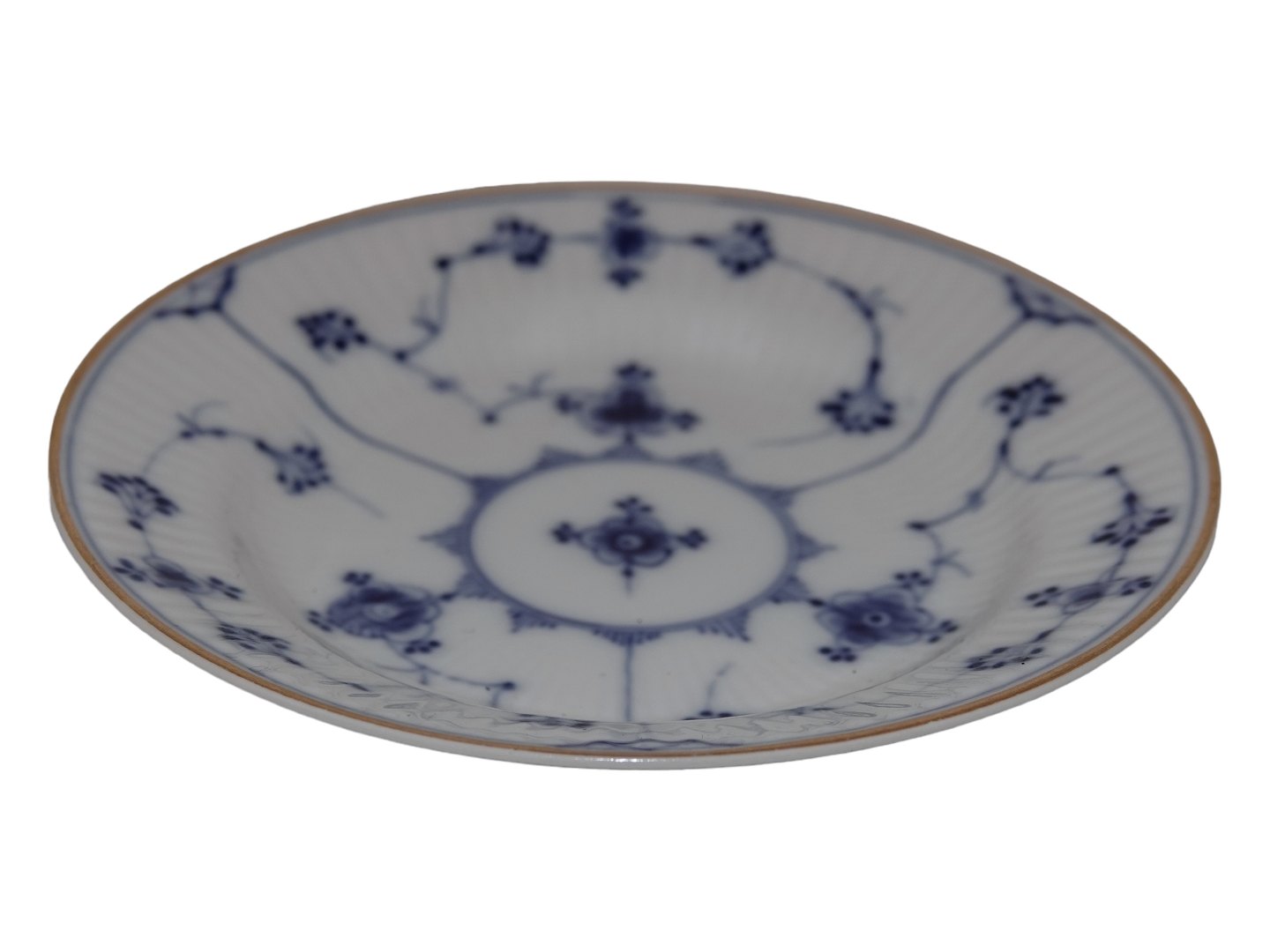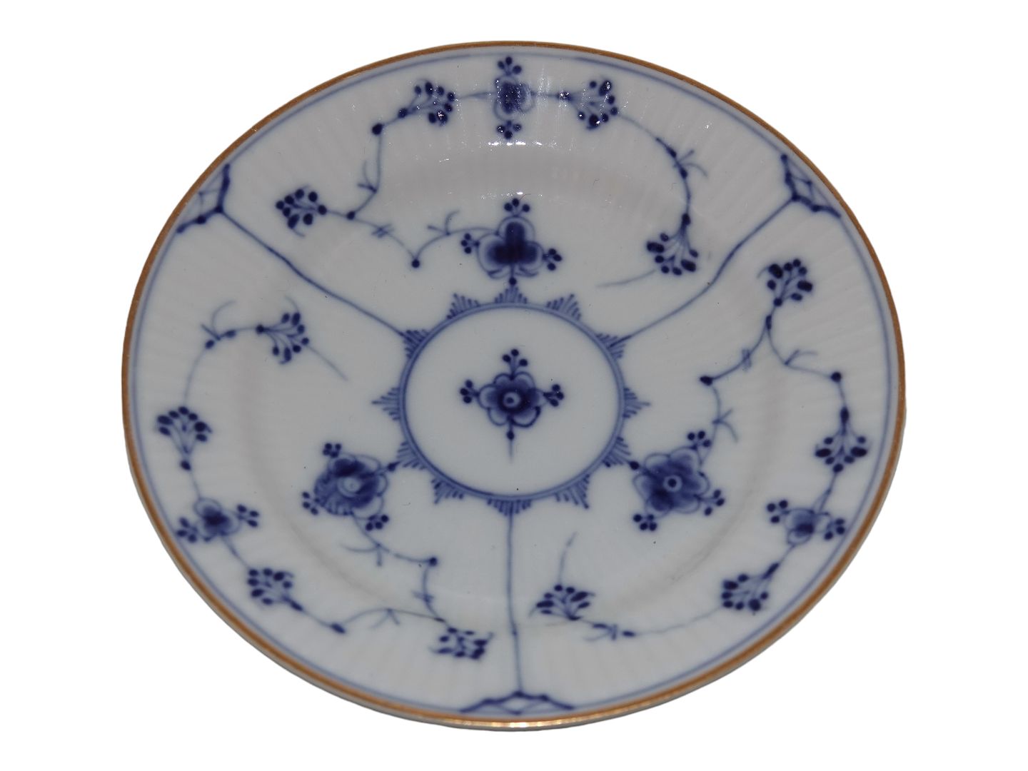 Bing & Grøndahl Musselmalet / Blåmalet Riflet med guldkant, lille kagetallerken. Fabriksmærket viser, at disse er produceret mellem 1902 og 1914. 1. sortering. Diameter 13,9 cm. Velholdt stand uden fejl.
