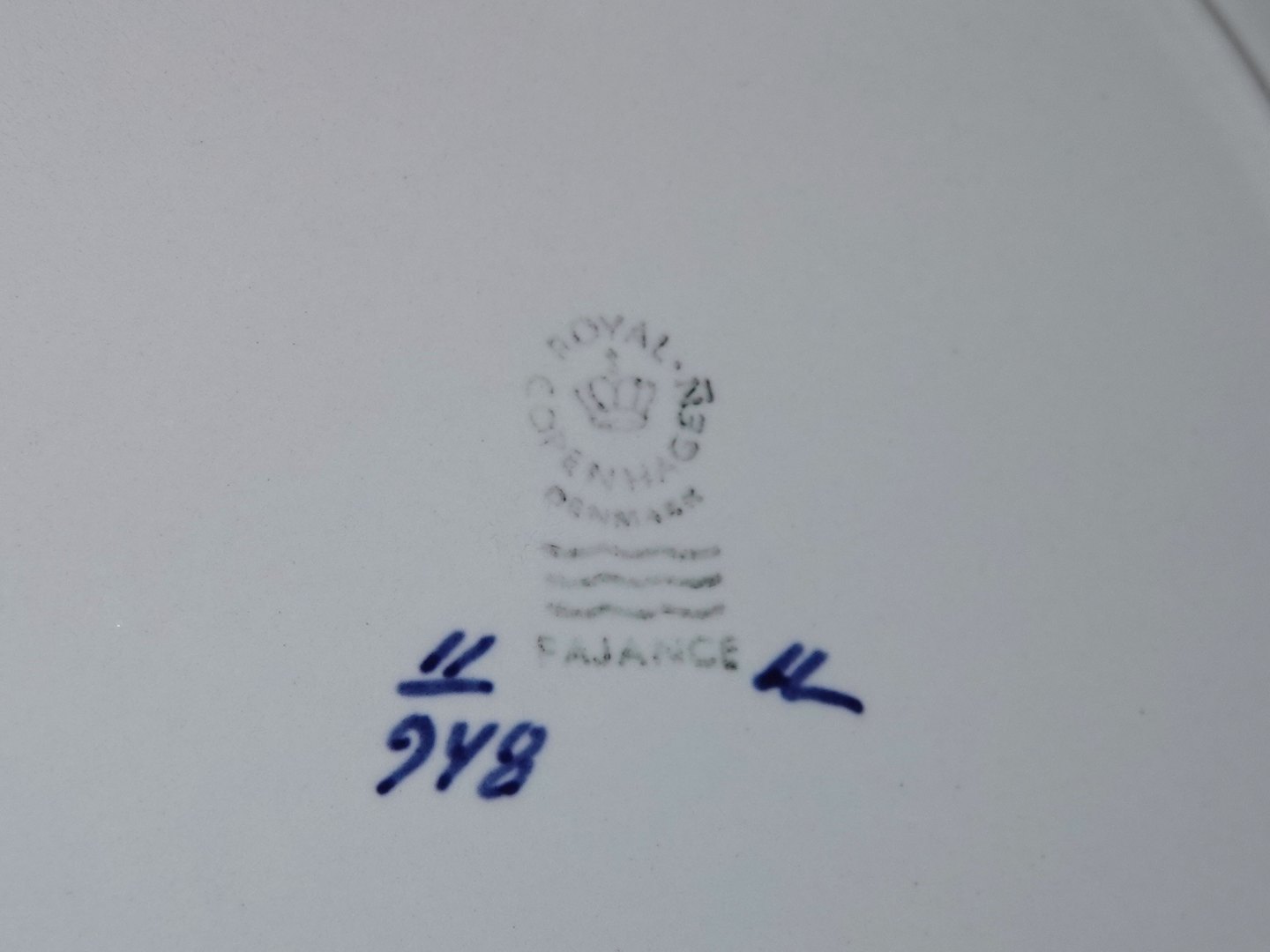 Royal Copenhagen og Aluminia Tranquebar, stor middagstallerken. Dekorationsnummer 11/948. Diameter 25,0 cm. Fin og fejlfri stand.