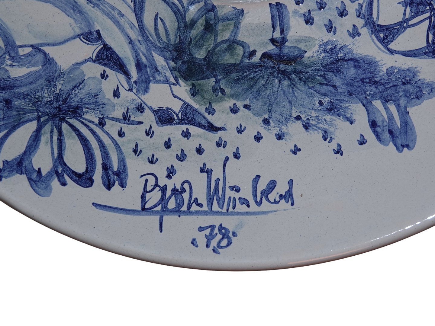 Bjørn Wiinblad keramik, stort unika vægfad fra 1978. Fadet er dekoreret med to damer. Diameter 41,5 cm. Perfekt stand.