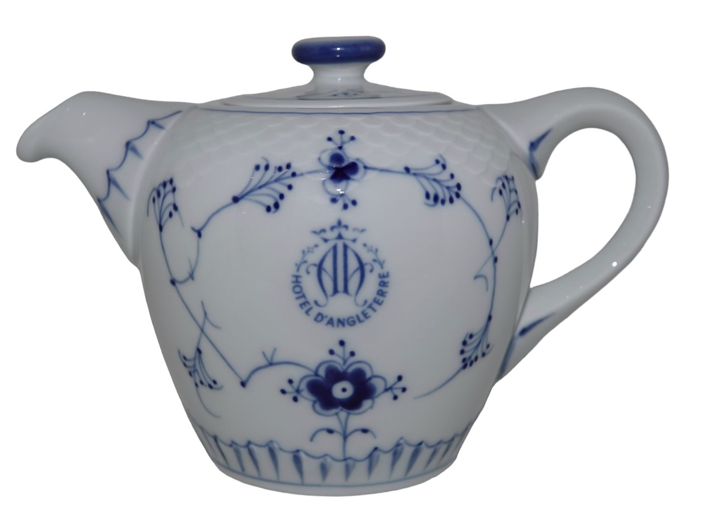 Bing & Grondahl Blue Traditional / Blue Fluted Thick porcelain, Extra small tea pot for 1 person with logo from Hotel d'Angleterre.