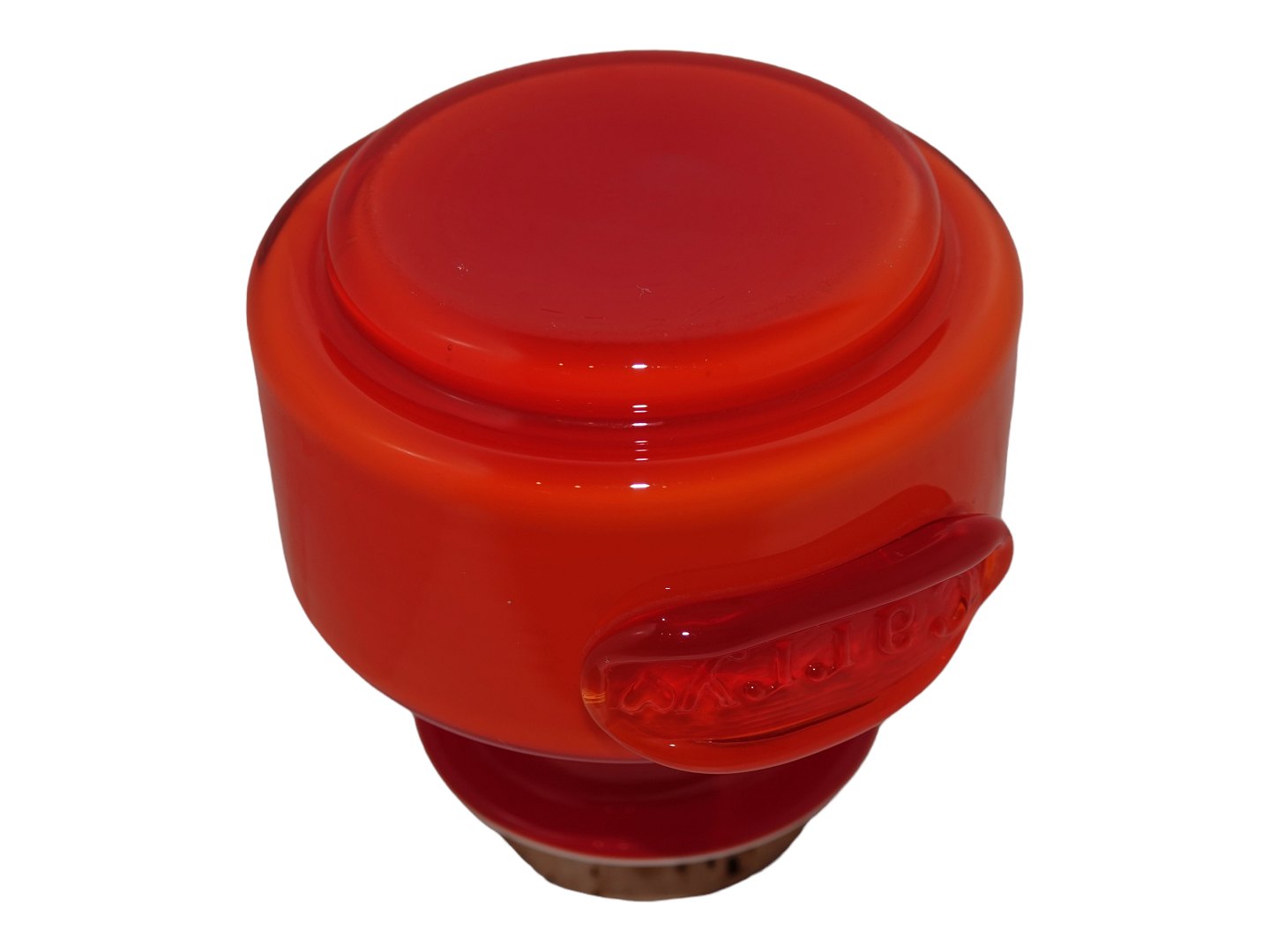 Holmegaard Palet rød krydderikrukke med teksten "Carry". Designet af Michael Bang i 1970. Højde 7,3 cm. uden prop. Perfekt stand uden fejl.