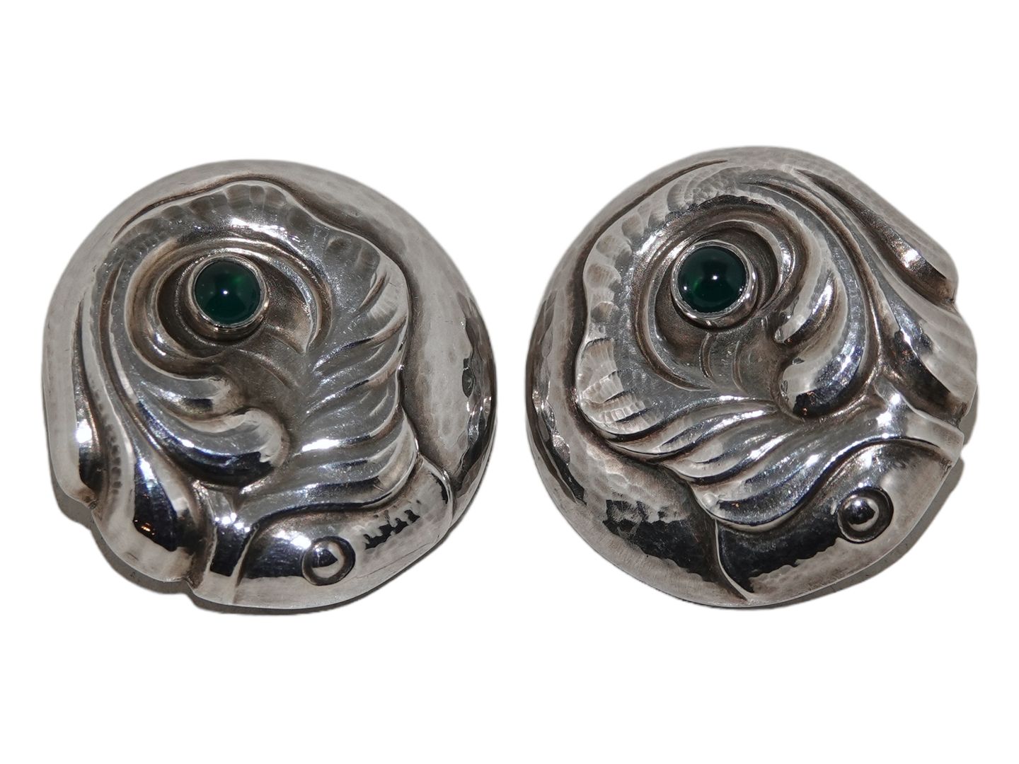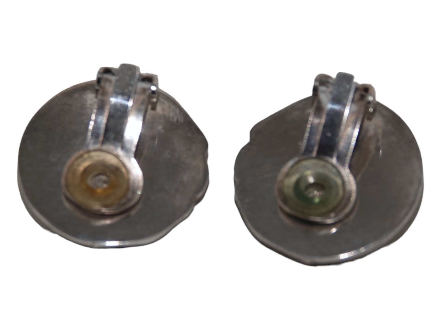 Georg Jensen sterlingsølv, øreclips / øreringe med grønne sten. Designnummer 63B. Disse er produceret efter 1945. Diameter 2,5 cm. Perfekt stand.