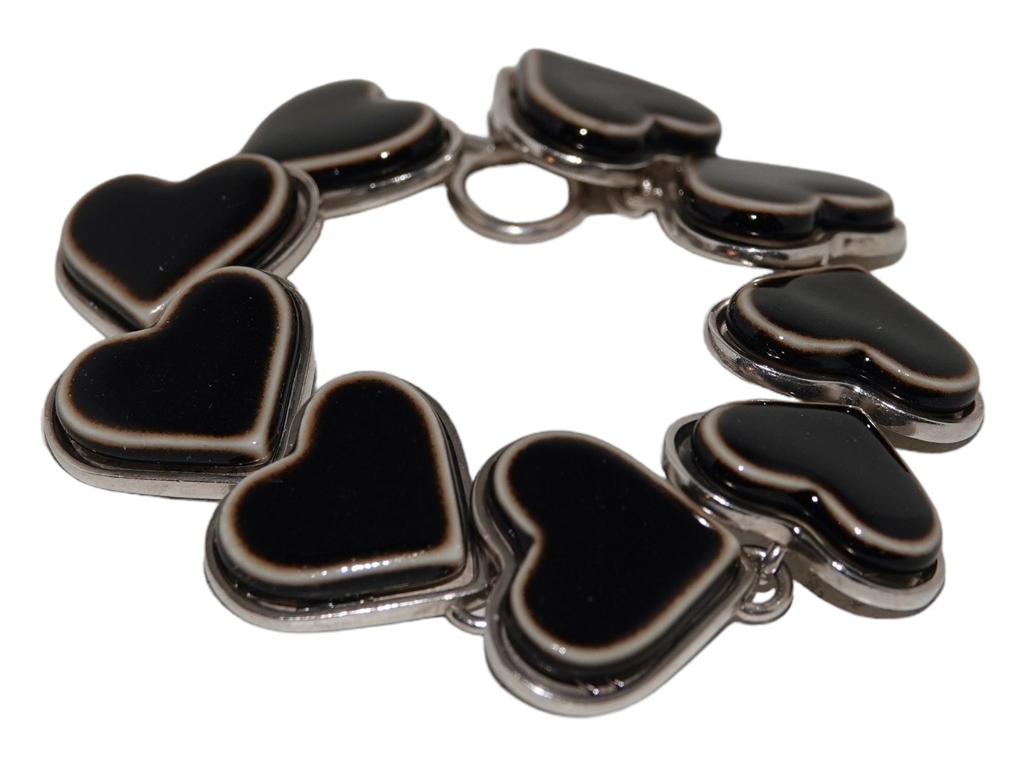 Royal Copenhagen sterlingsølv og porcelæn, armbånd med sorte hjerter.