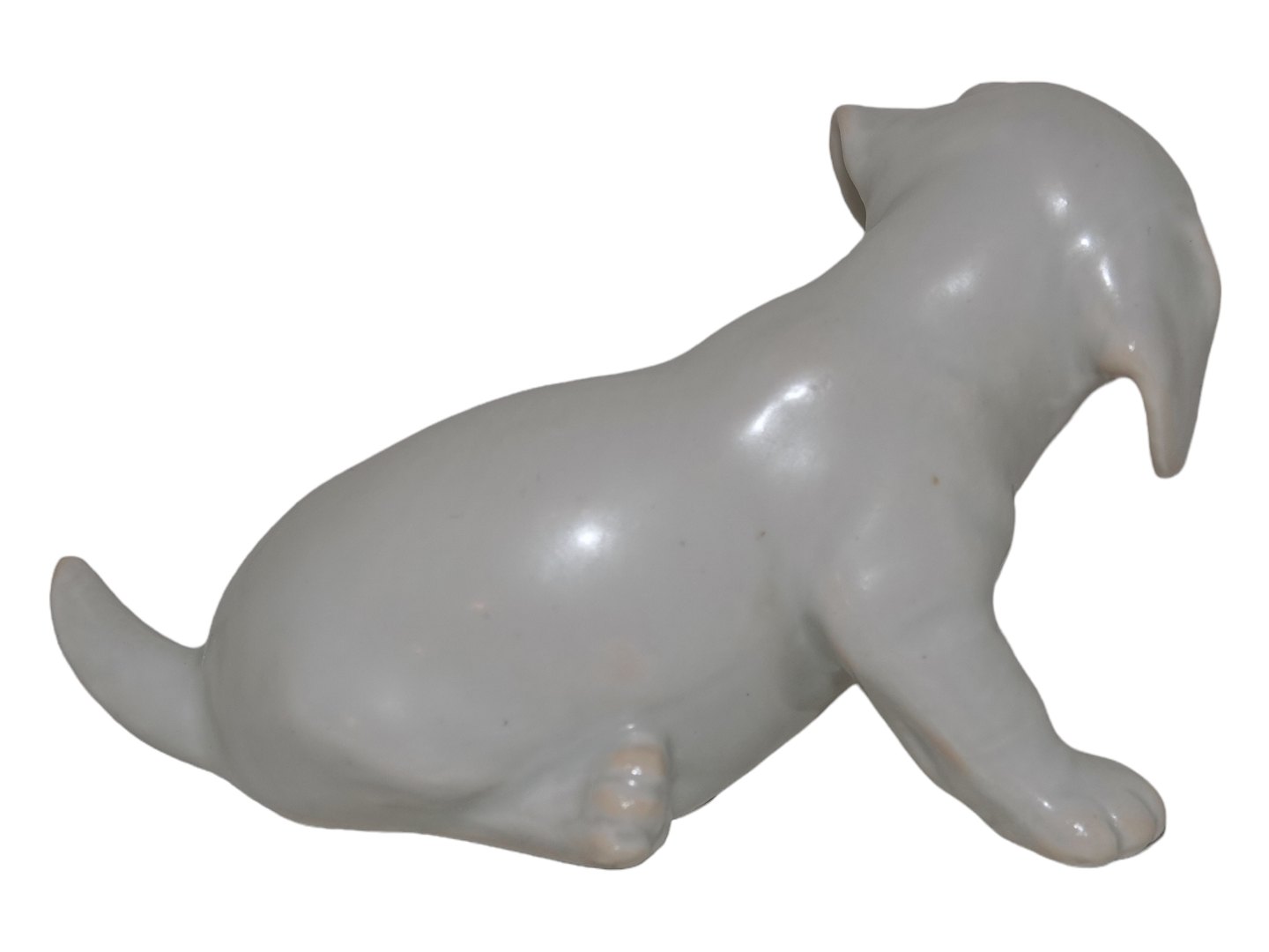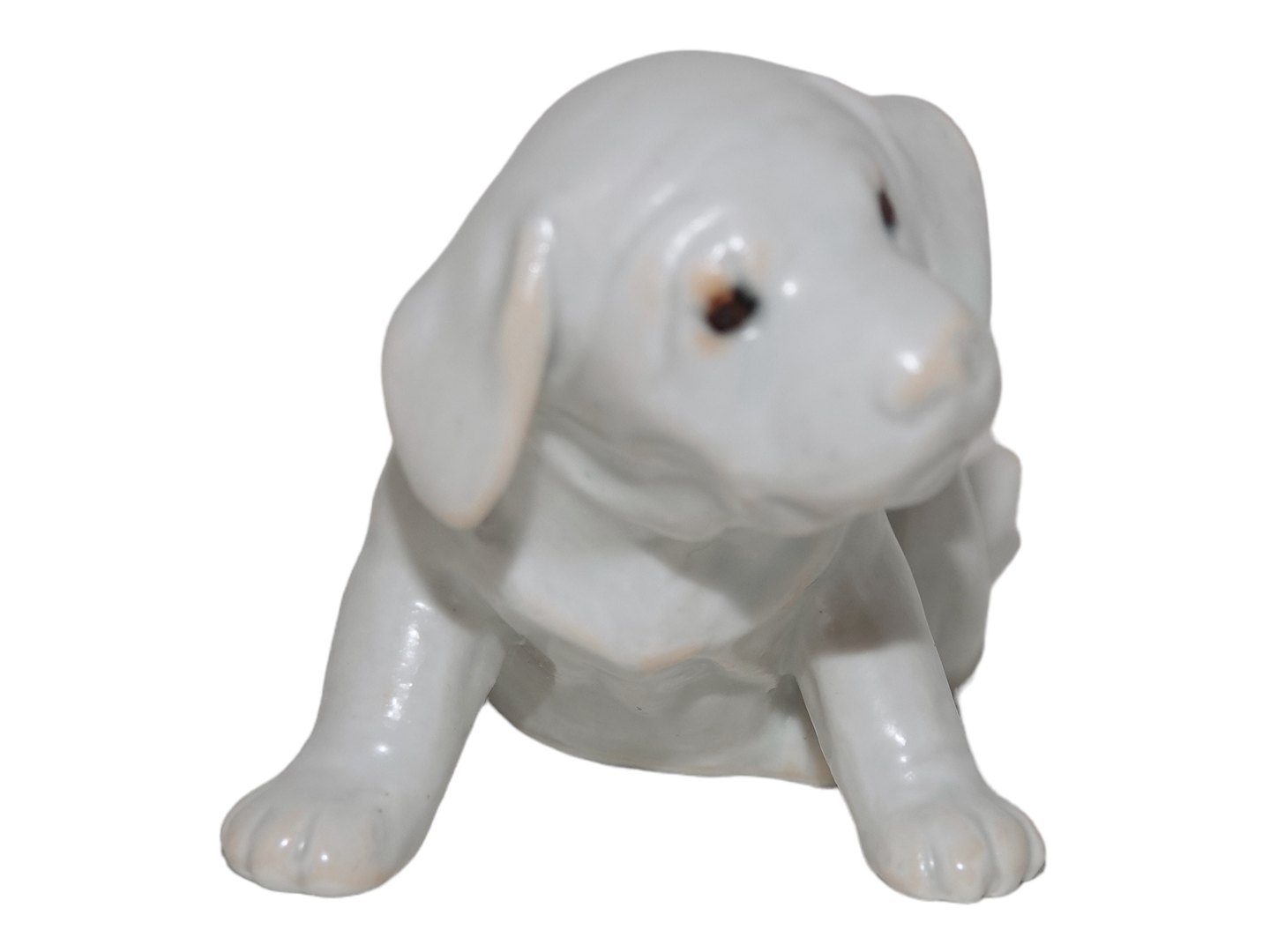 Royal Copenhagen hundefigur, pointer hvalp med mat hvid glasur.