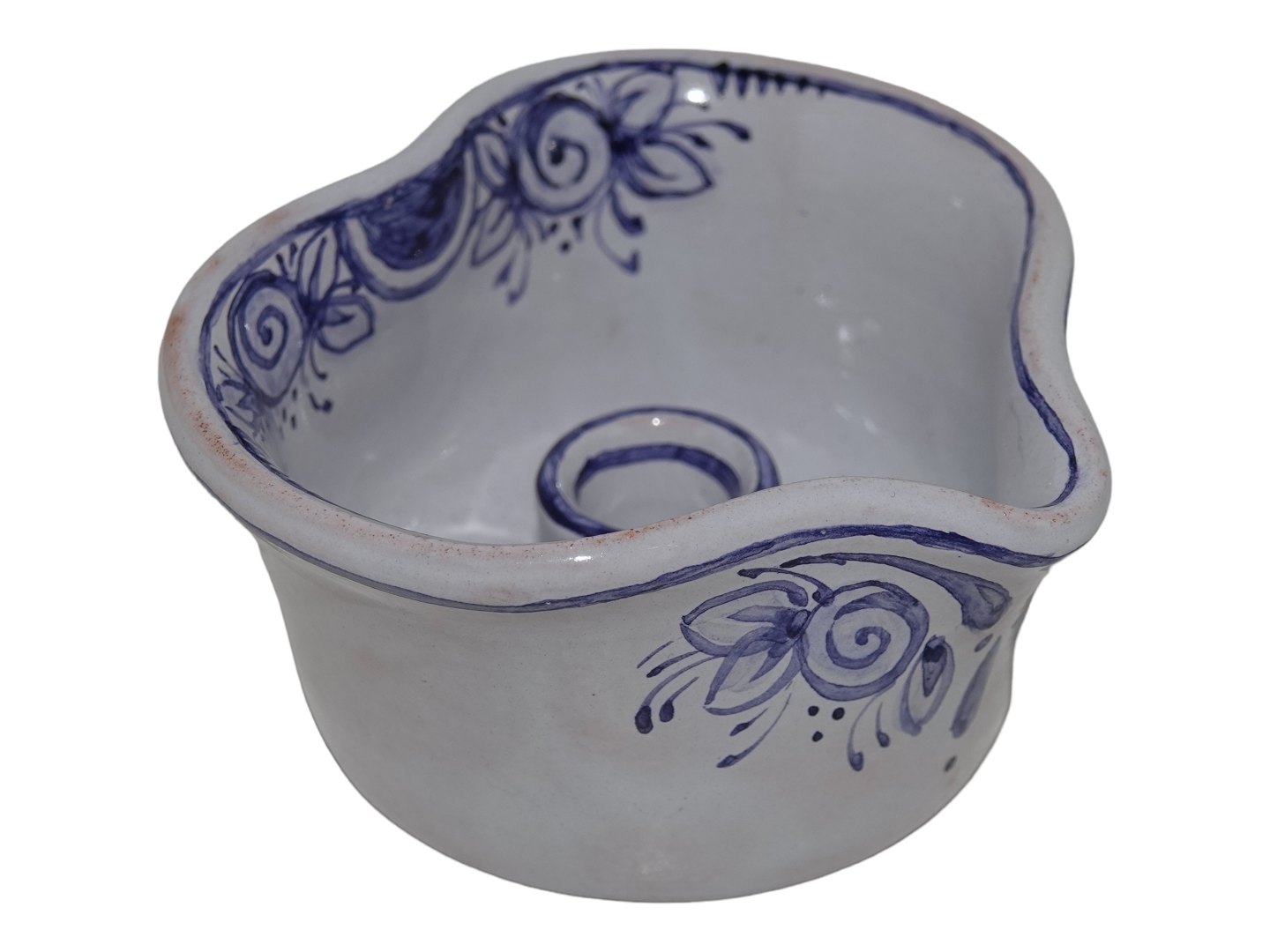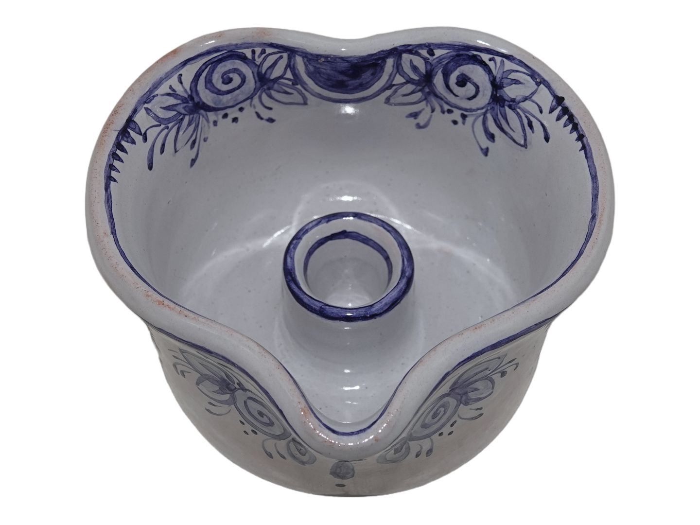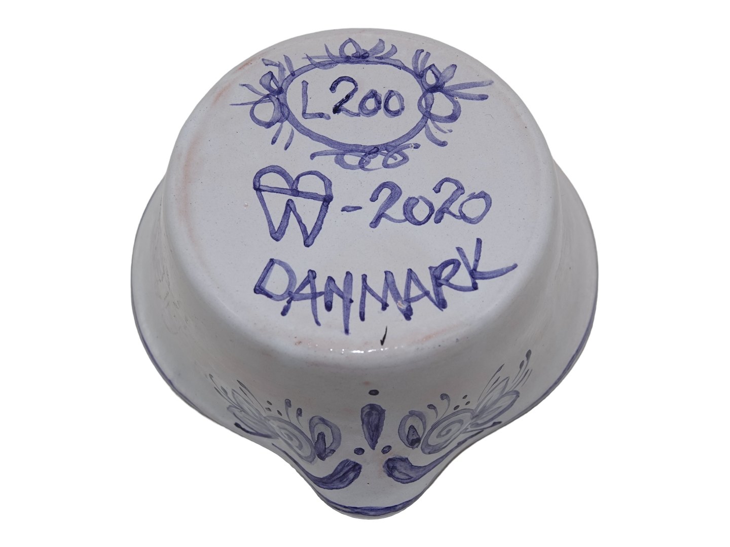 Bjorn Wiinblad art pottery heart shaped candle light holder. Decoration number L200. This is from 2020. Measures 9.2 by 8.5 cm. There is some uneven glaze on the edge, please see close-up picture, otherwise perfect condition.