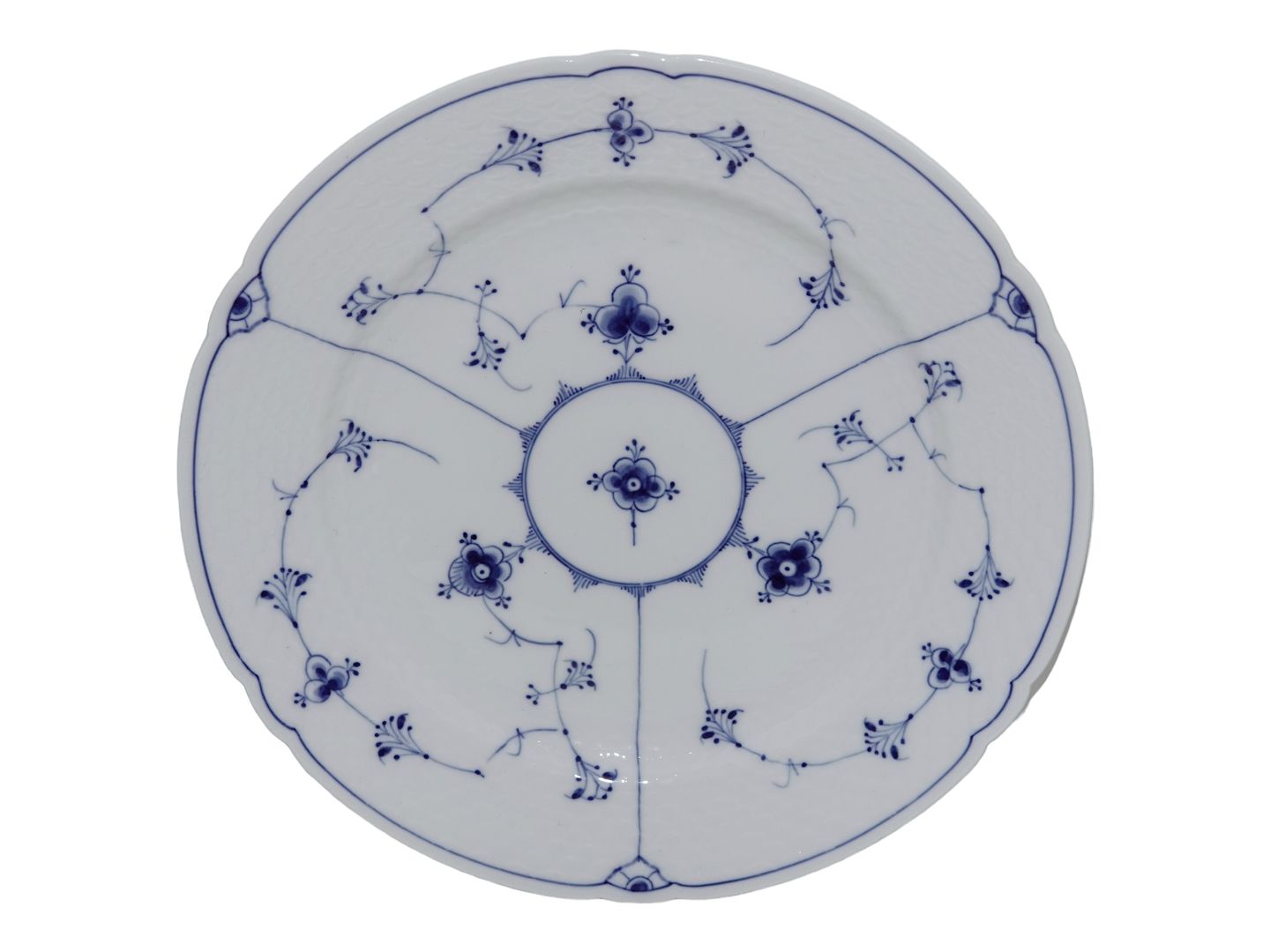 Bing & Grøndahl Blåmalet (Musselmalet), rundt fad. Af fabriksmærket kan det udledes, at denne er produceret mellem 1915 og 1948. 1. sortering. Diameter 32,5 cm. Perfekt stand uden fejl.