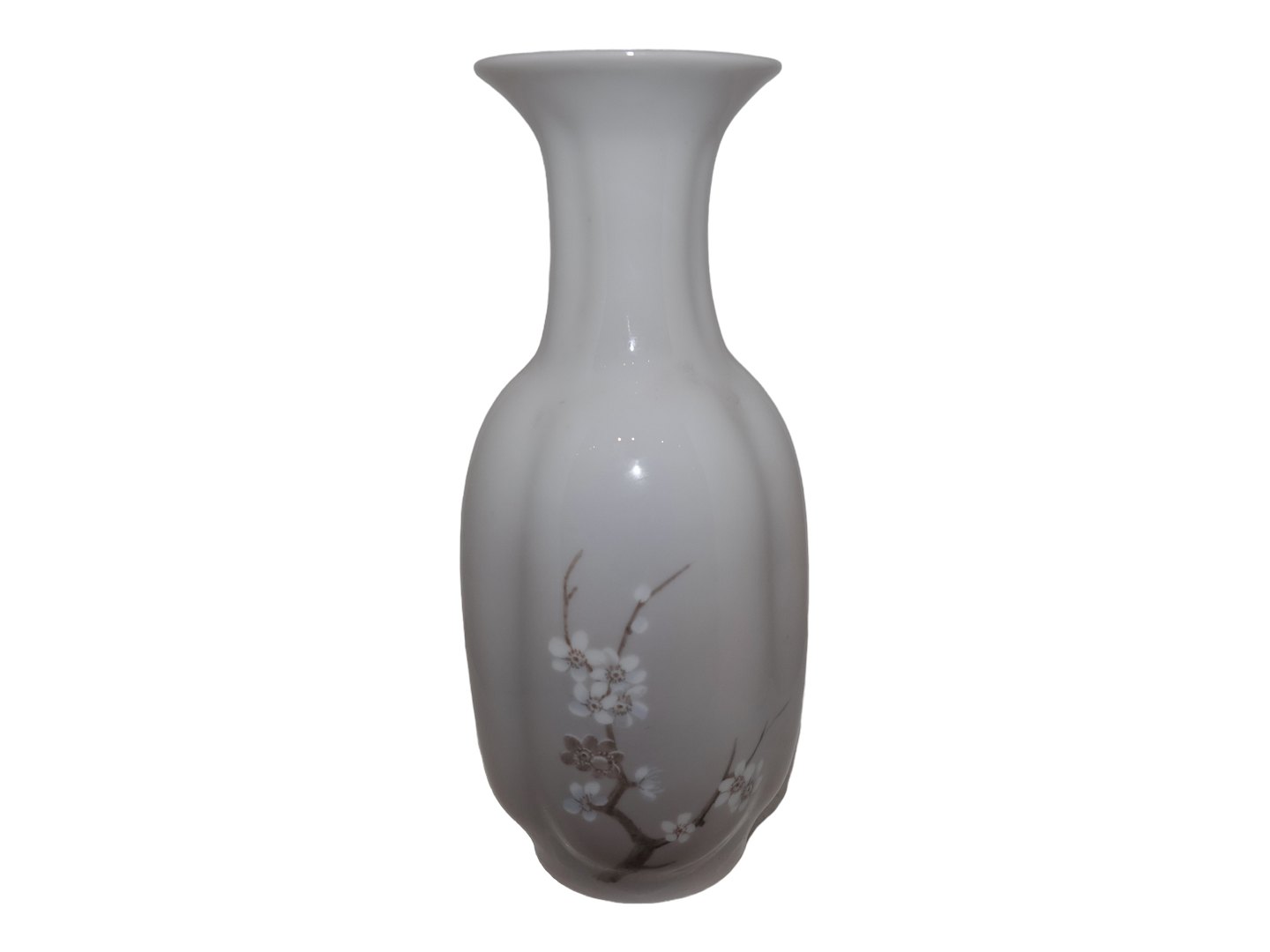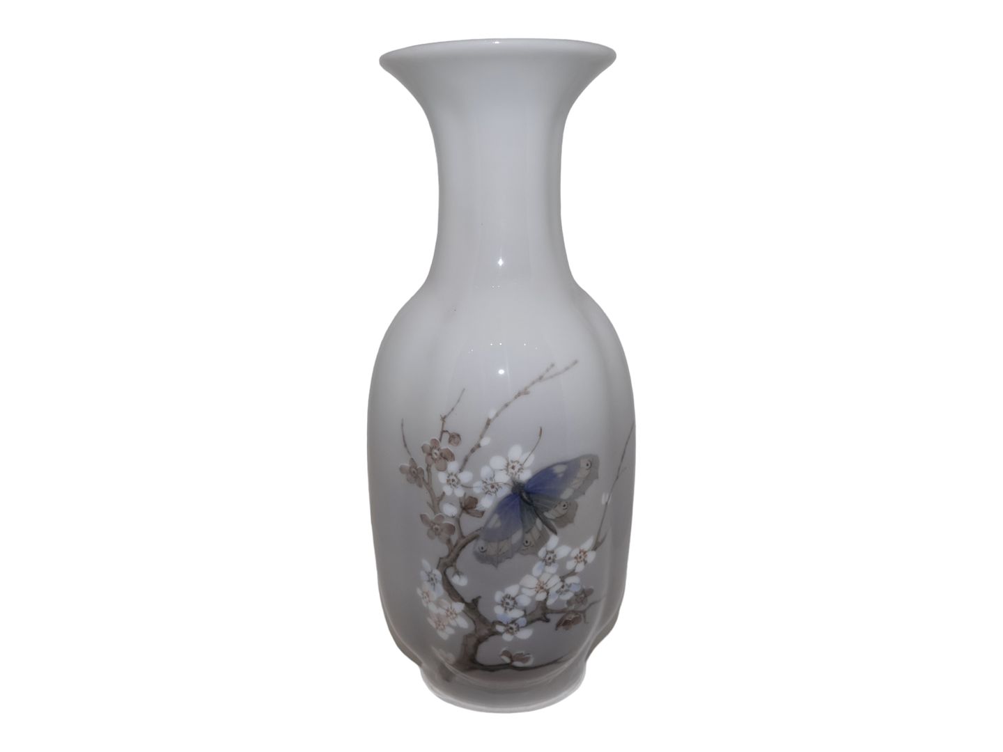 Royal Copenhagen større vase i kantet form dekoreret med kirsebærgrene og sommerfugl.
