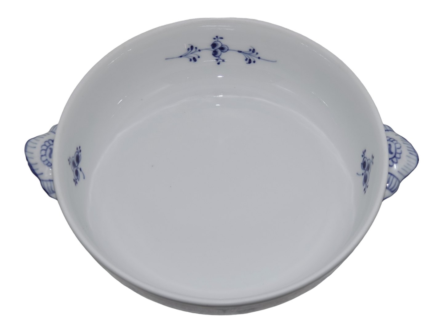 Royal Copenhagen Musselmalet Riflet, rundt lågfad (lille terrin). Denne er produceret i mellem 1975 og 1979. Dekorationsnummer 1/277. Medarbejdersortering. Diameter 20,2 cm. uden hanke. Perfekt stand uden fejl.