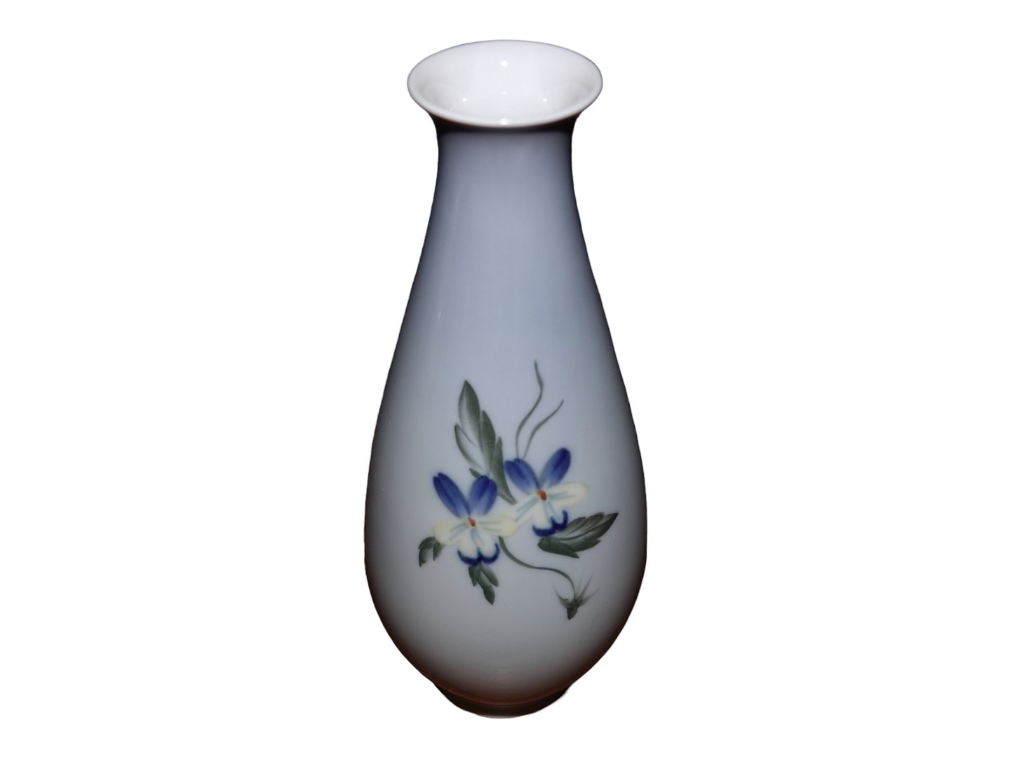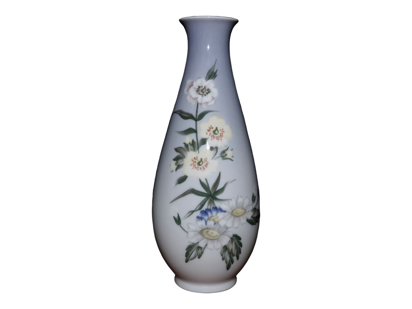 Royal Copenhagen vase med blå og hvide blomster.