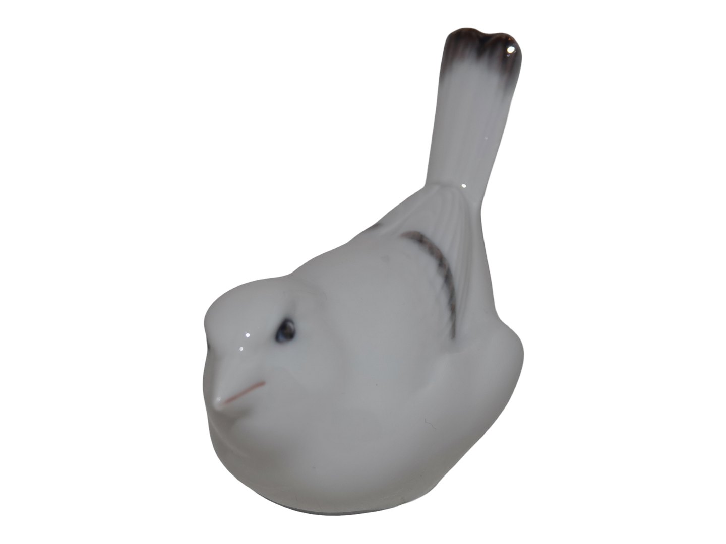 Royal Copenhagen fuglefigur, hvid gråspurv med halen opad (optimist). Dekorationsnummer 8/1081. 3. sortering. Længde 9,2 cm. Perfekt stand uden fejl.