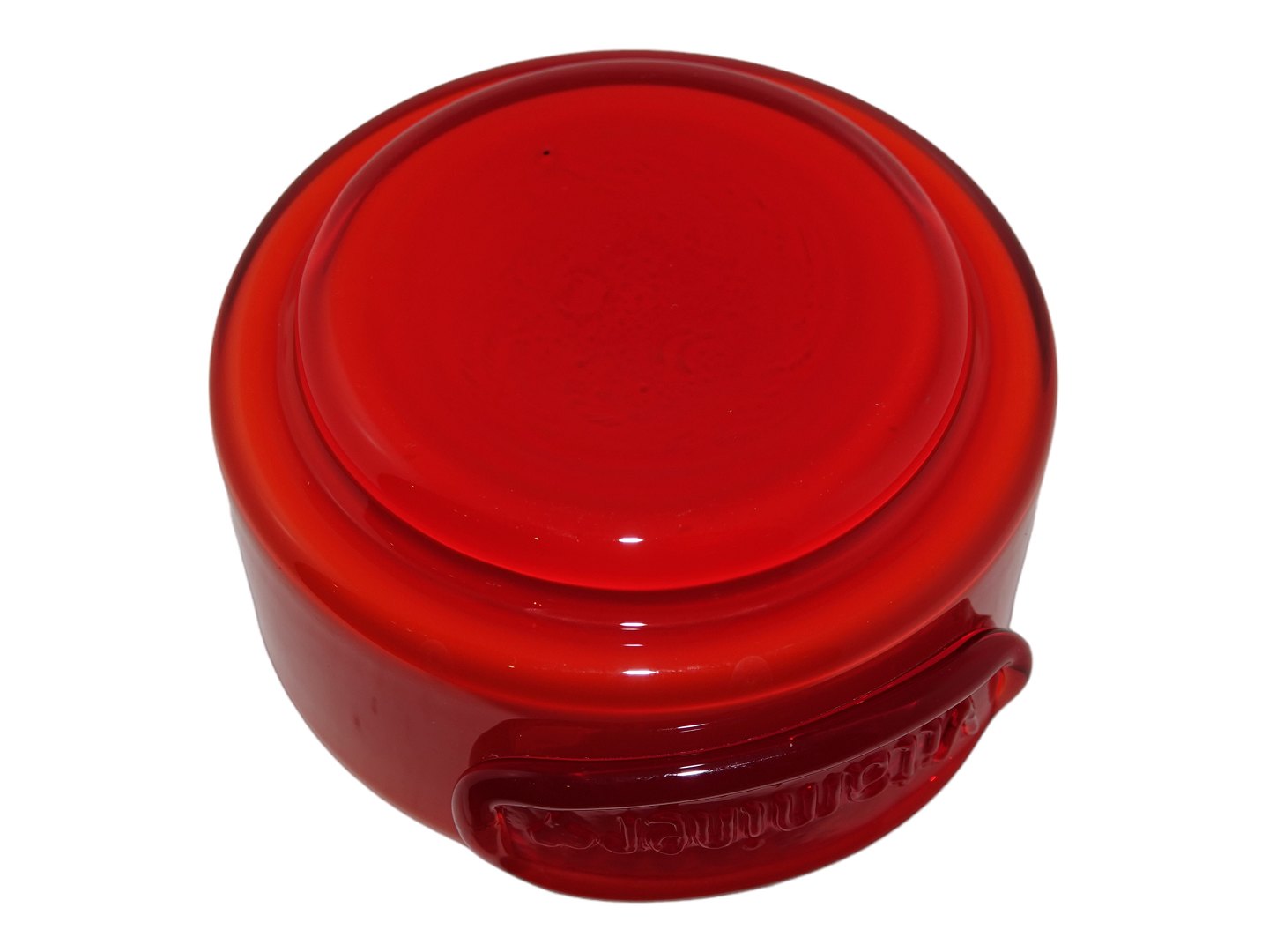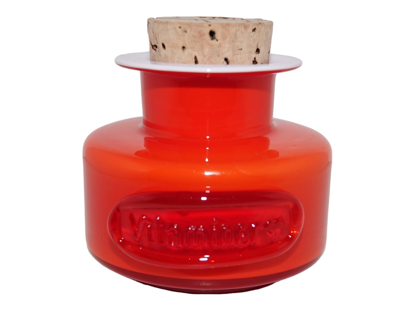 Holmegaard Palet rød krydderikrukke med teksten "Vitaminer".
