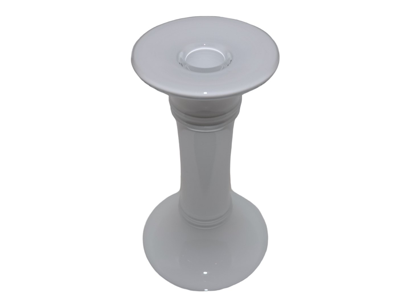 Holmegaard MB candle holder, white opal glass. Designed by artist Michael Bang in 1982. Height 18.5 cm. Perfect condition.