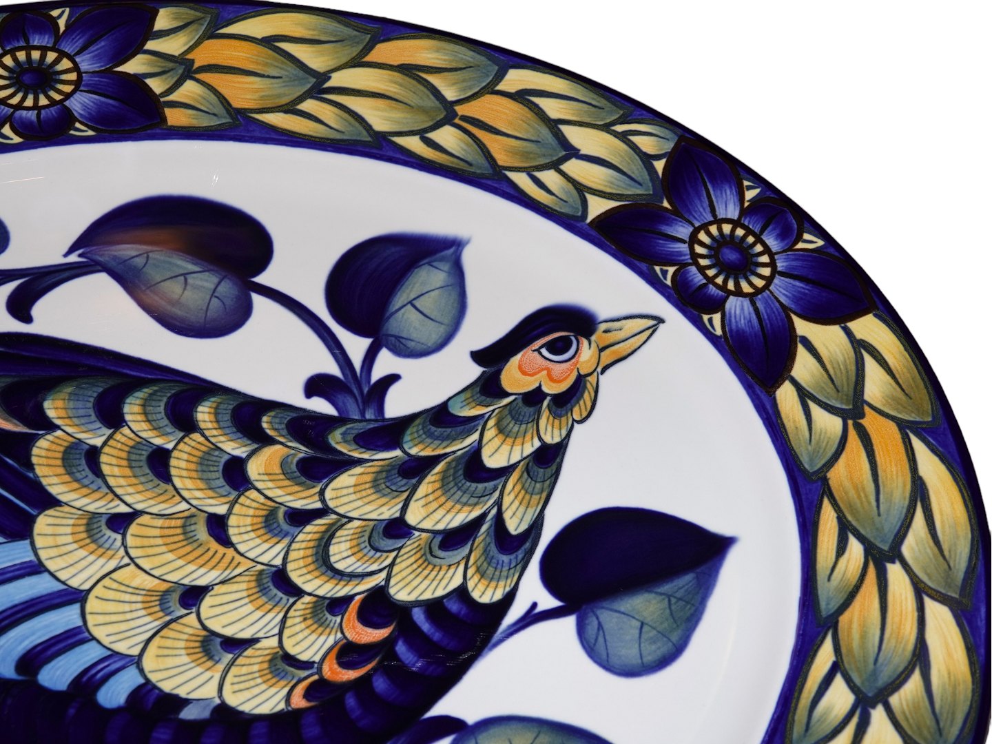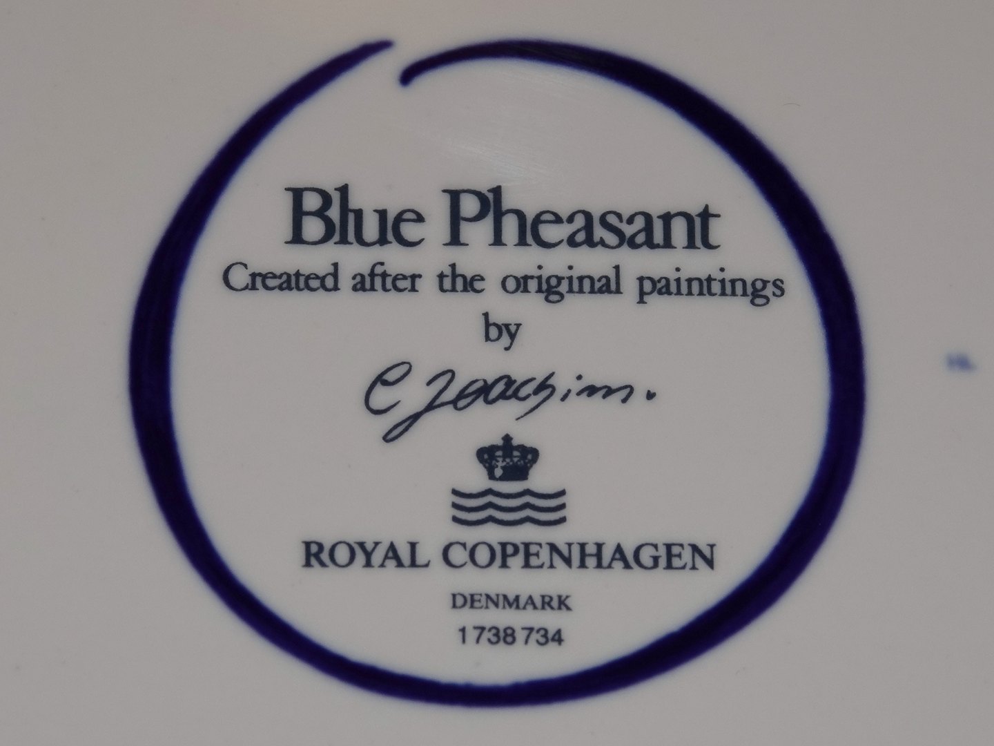Royal Copenhagen Blå Fasan, ekstra stort fad med ophængshuller. Dekorationsnummer 1 738 734. 1. sortering. Længde 51,5 cm. Perfekt stand uden fejl.