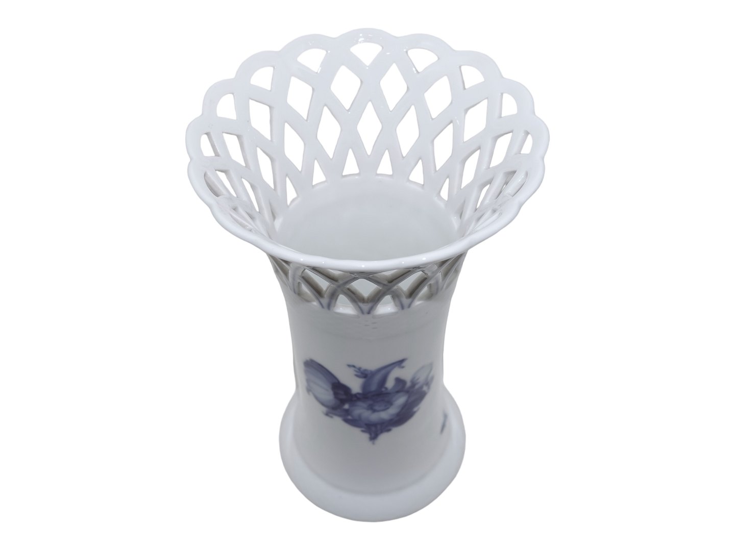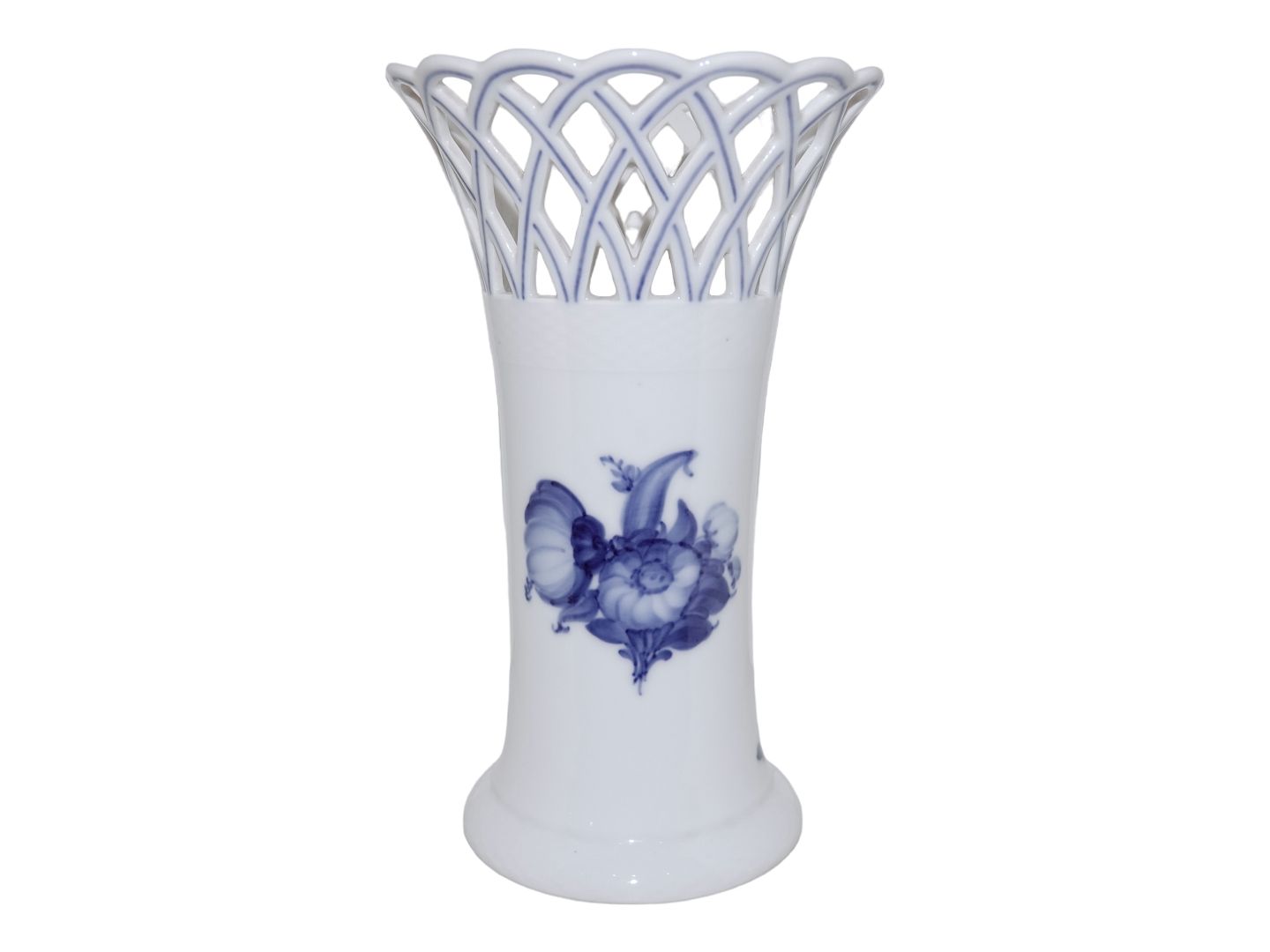 Høj og ret sjælden Royal Copenhagen Blå Blomst Flettet vase med gennembrudt kant.