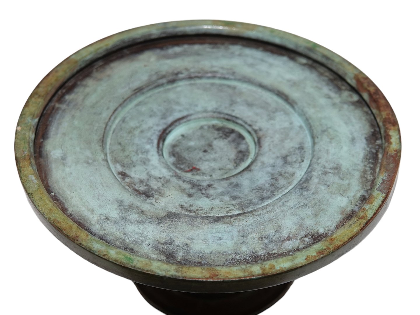 Par store, lave lysestager i bronze til store stearinlys fra ca. 1920 til 1930.