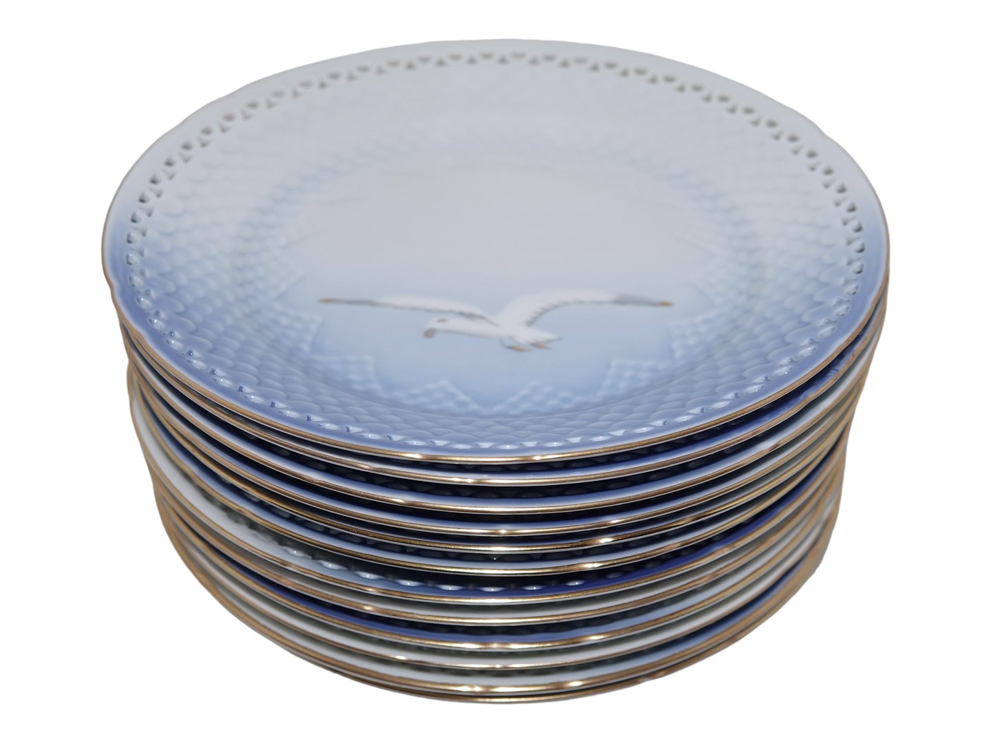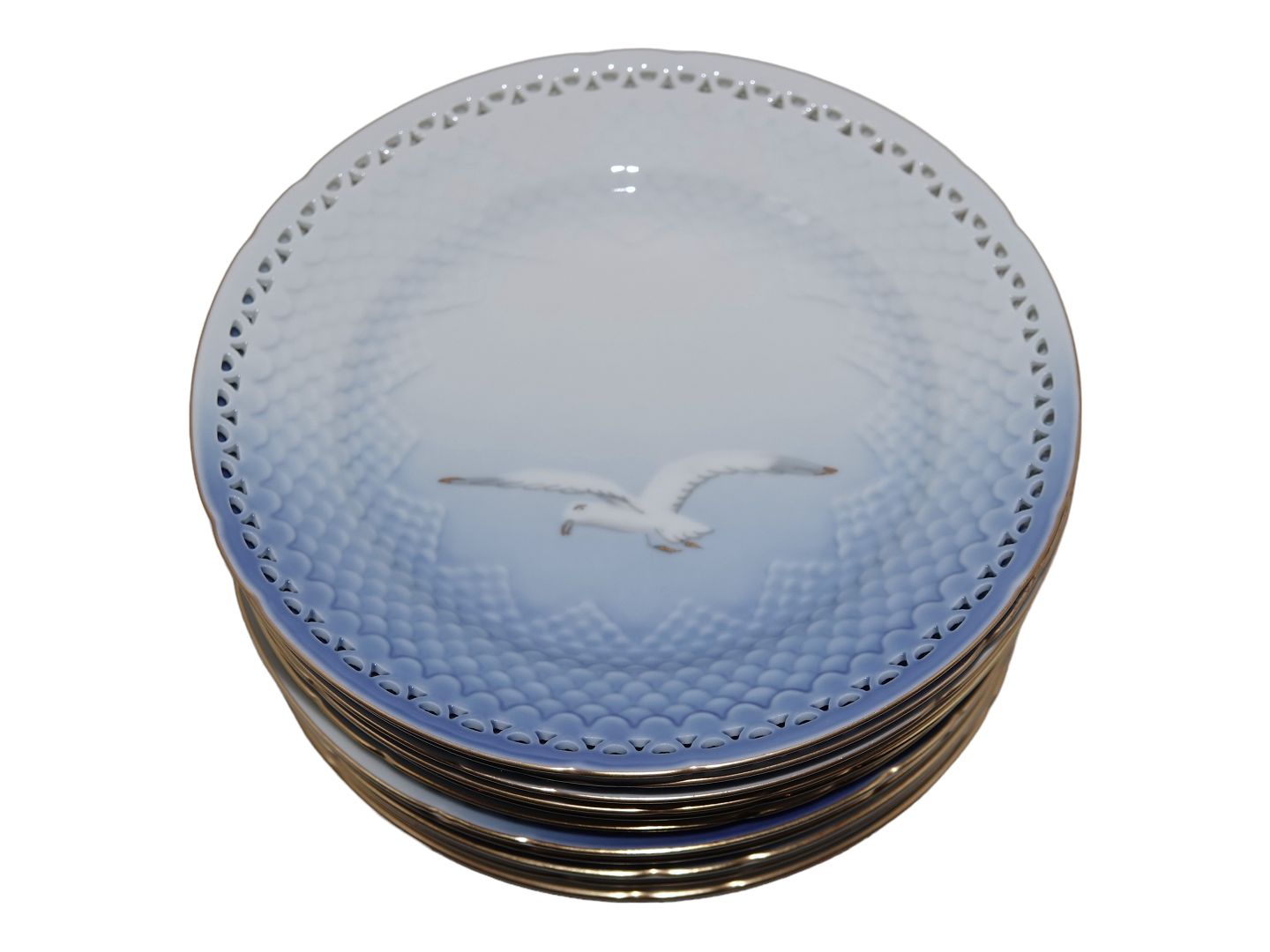 Bing & Grøndahl Måge med guldkant, stor desserttallerken med gennembrudt kant.