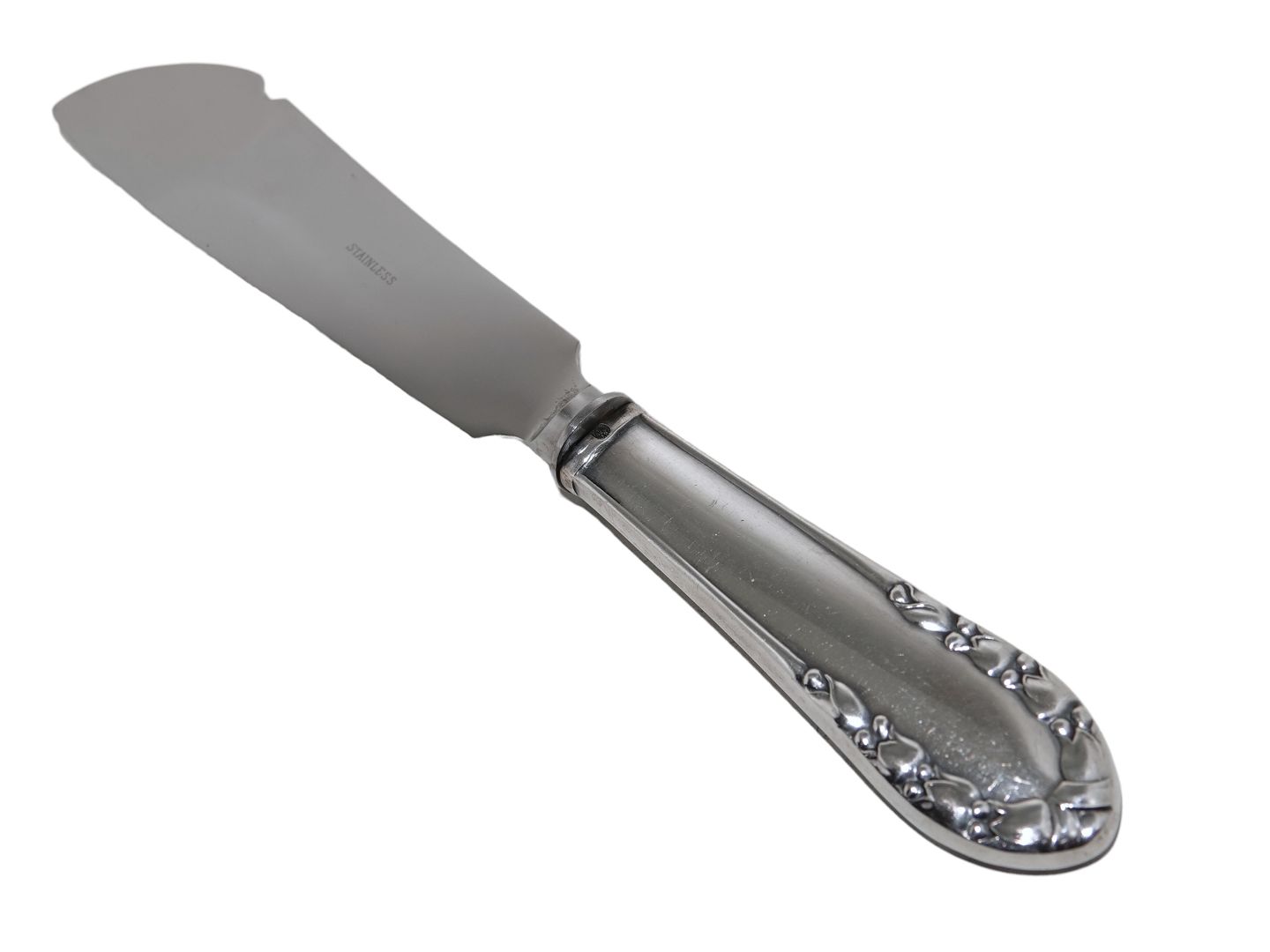 Georg Jensen Lile of the Valley sterling silver and stainless steel, pie knife. Length 23.5 cm. Excellent condition with no engravings.