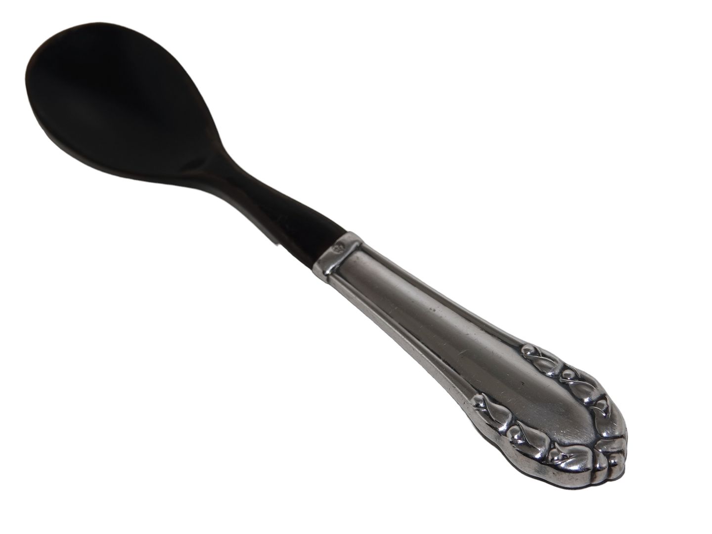 Georg Jensen Liljekonval sølv, lille salatske / serveringsske med sort horn.