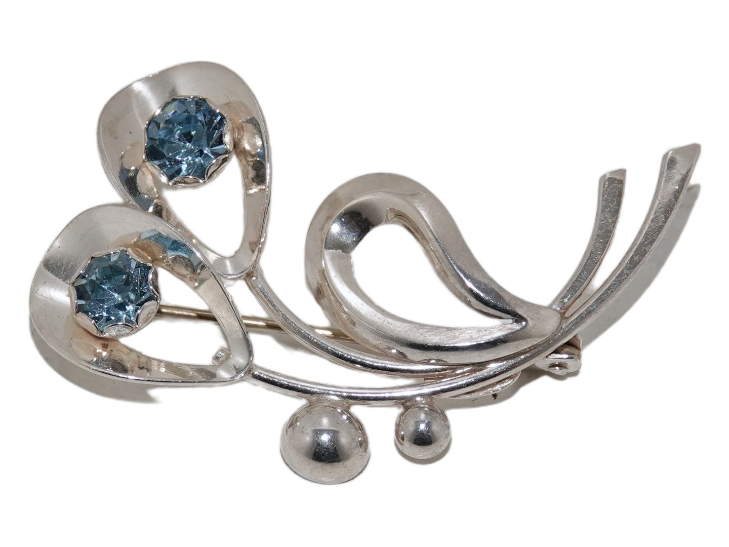 Herman Siersbøl Sterling silver, brooch with light blue stones from around 1970.