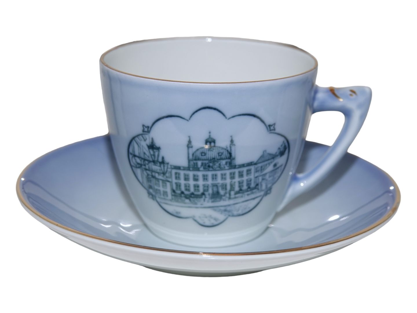 Bing & Grøndahl Slotsstellet, kaffekop og underkop med slottet Fredensborg.