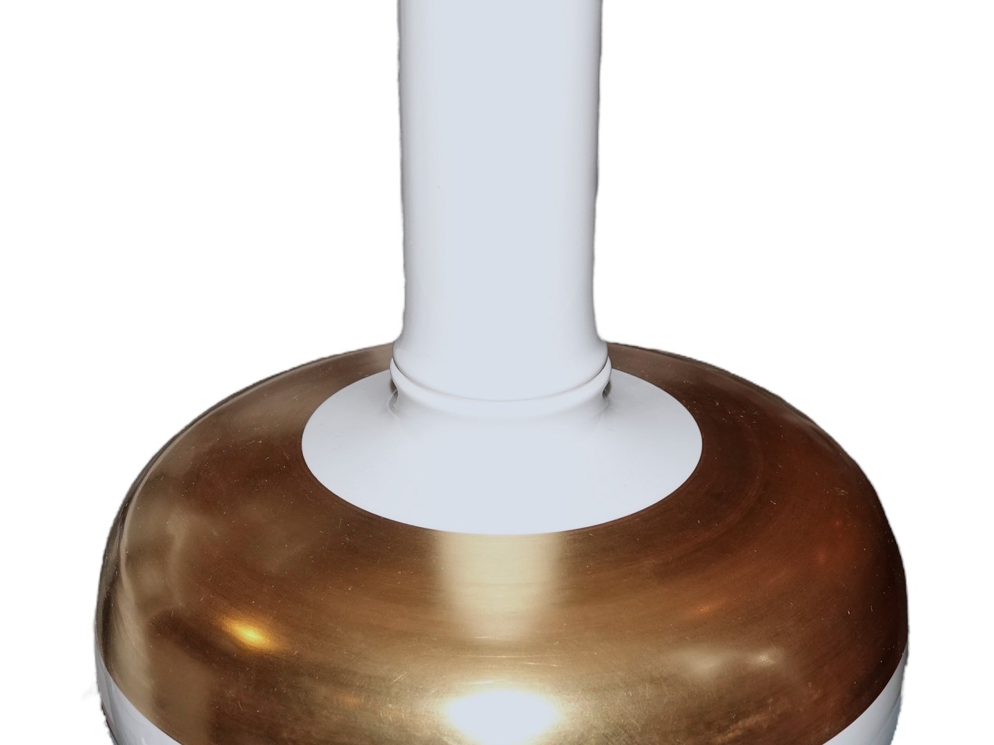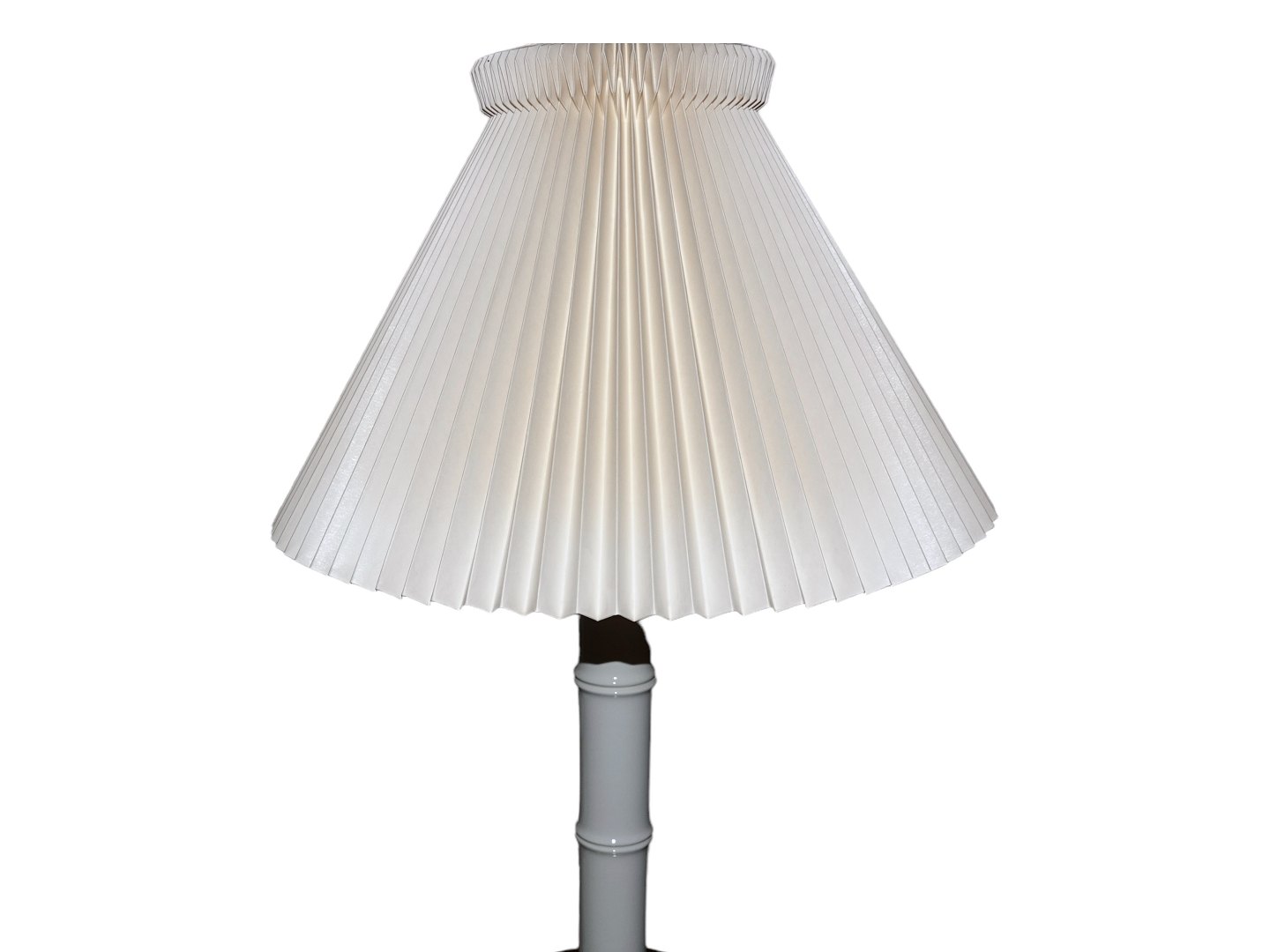 Royal Copenhagen Faience, tall table lamp in Tenera style decoration with gold edge and Le Klint shade. The lamp is shaped as a bamboo.