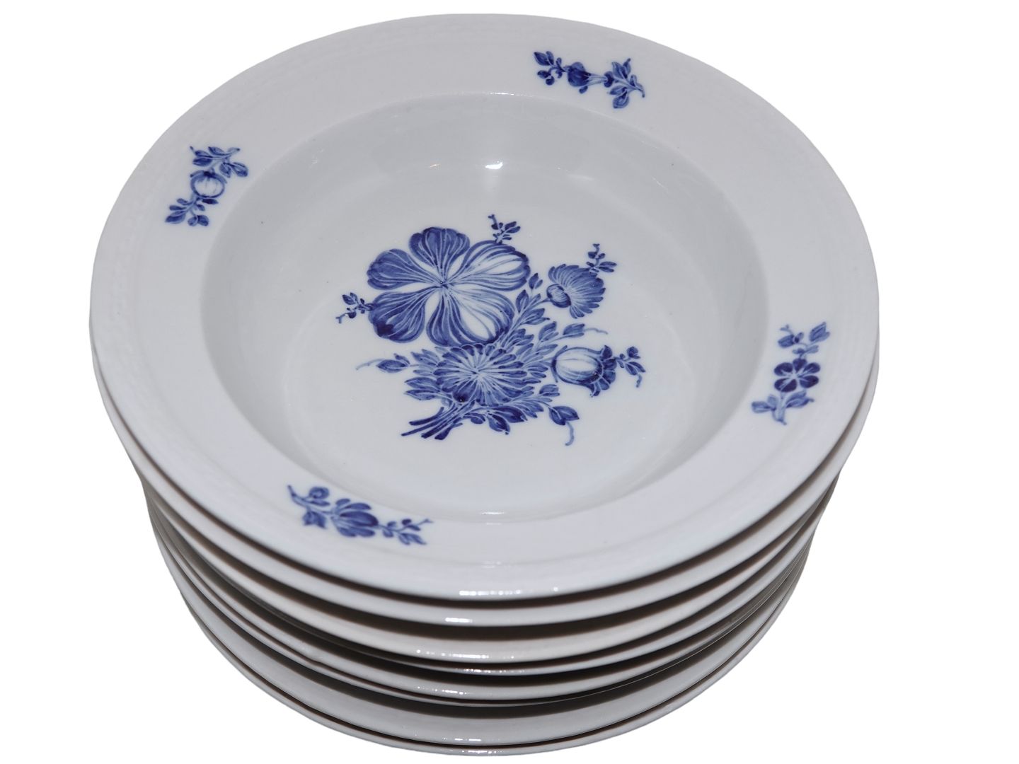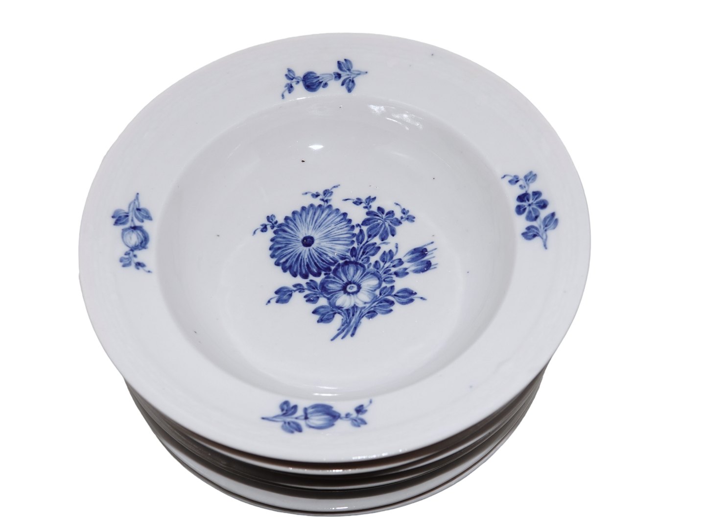 Royal Copenhagen Blå Blomst Flettet, tidlig lille ekstra dyb tallerken i svagt gråligt porcelæn.