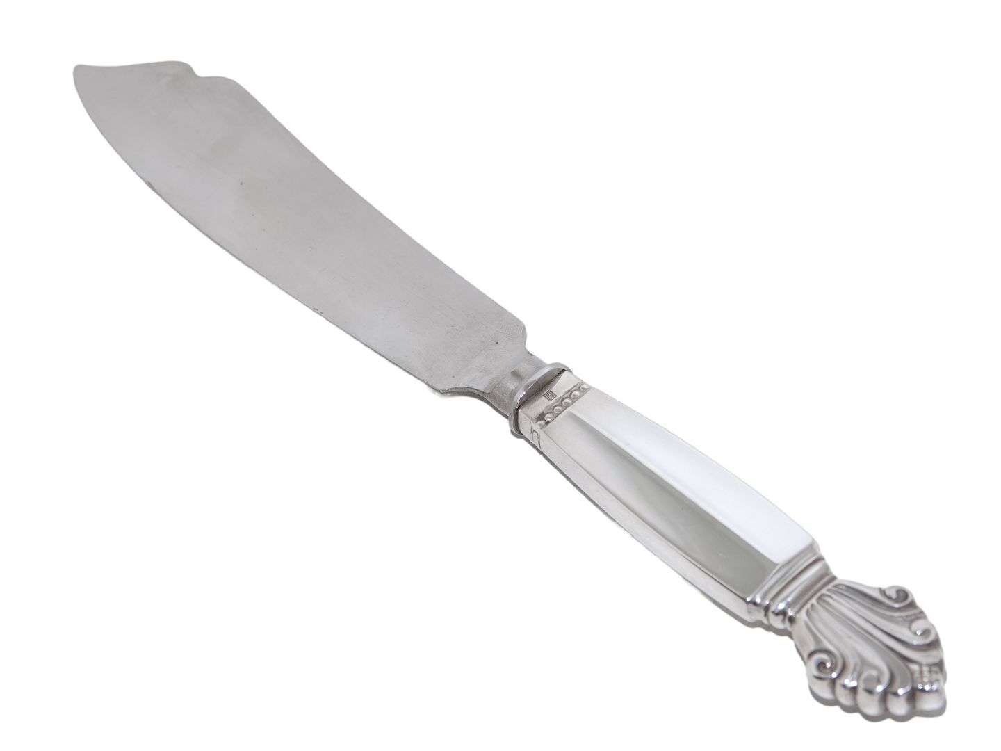 Georg Jensen Aconite sterling silver and stainless steel, large cake serving knife.