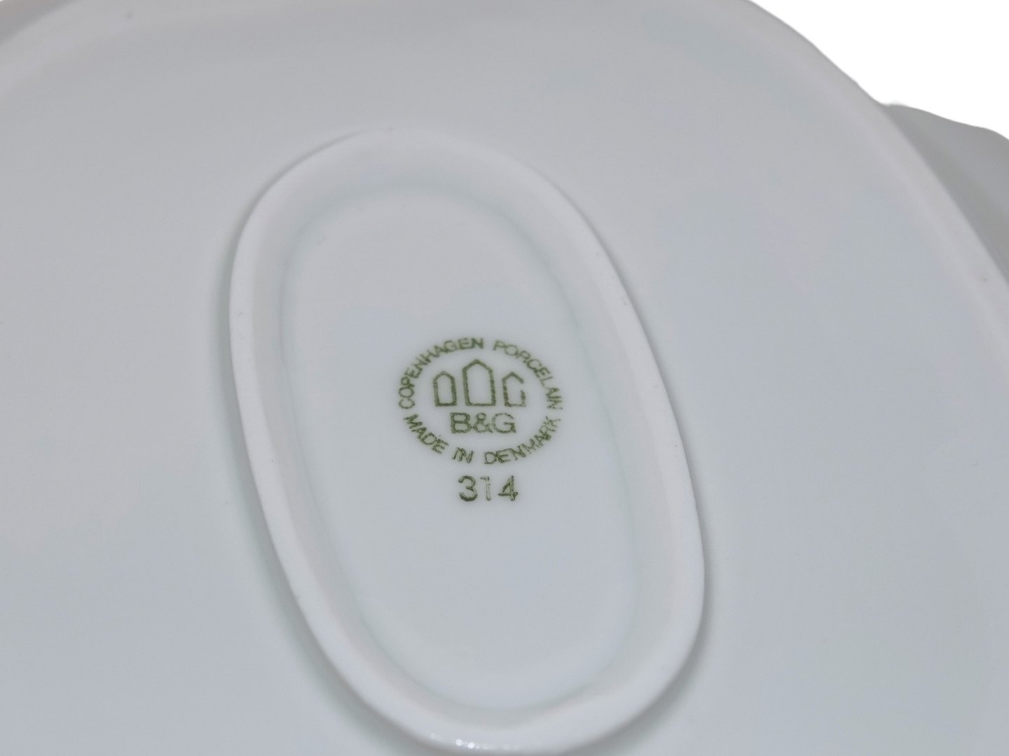 Bing & Grøndahl Hvid Koppel, lille dybt fad. Designet af Henning Koppel. Dekorationsnummer 314. 1. sortering. Længde 21,5 cm. Perfekt stand uden fejl.