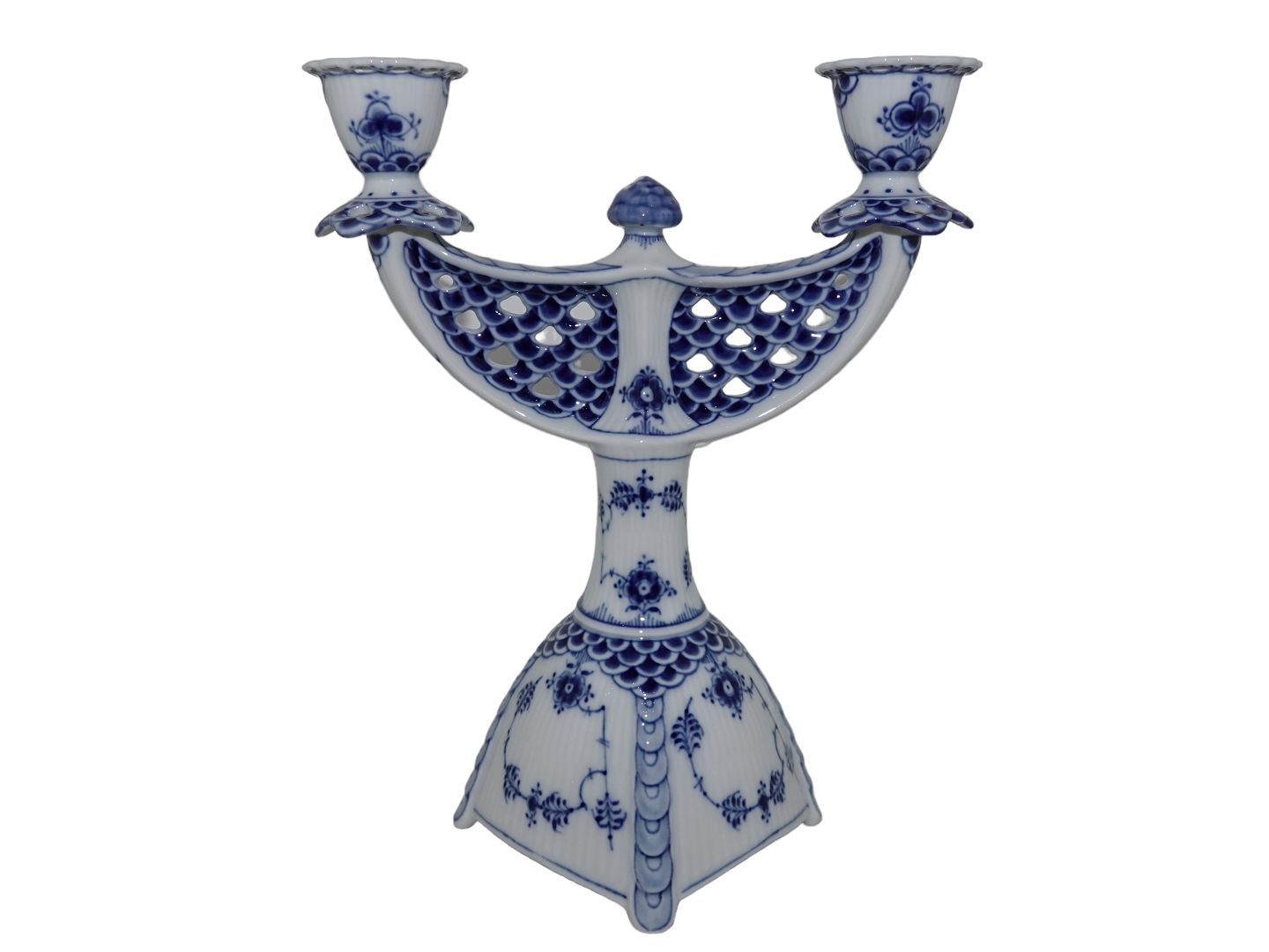Royal Copenhagen Musselmalet Helblonde, to-armet lysestage.
