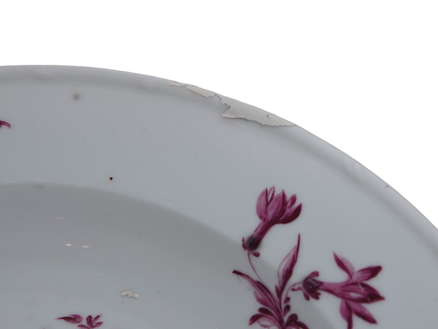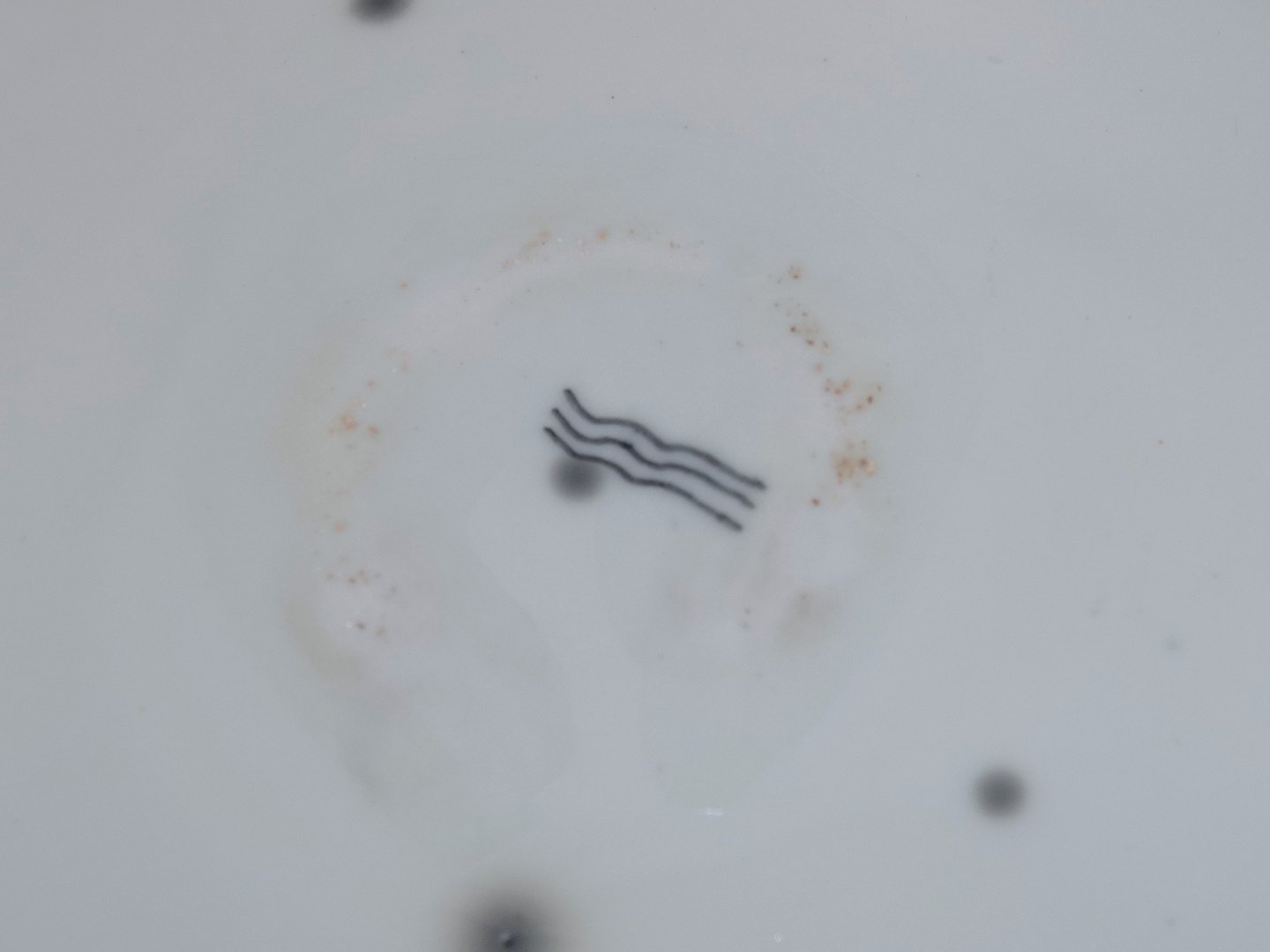 There is one repair on the edge (please see picture). There are also some small spots in the glaze and a born with uneven shape. Otherwise perfect condition with no chips, cracks or repairs.