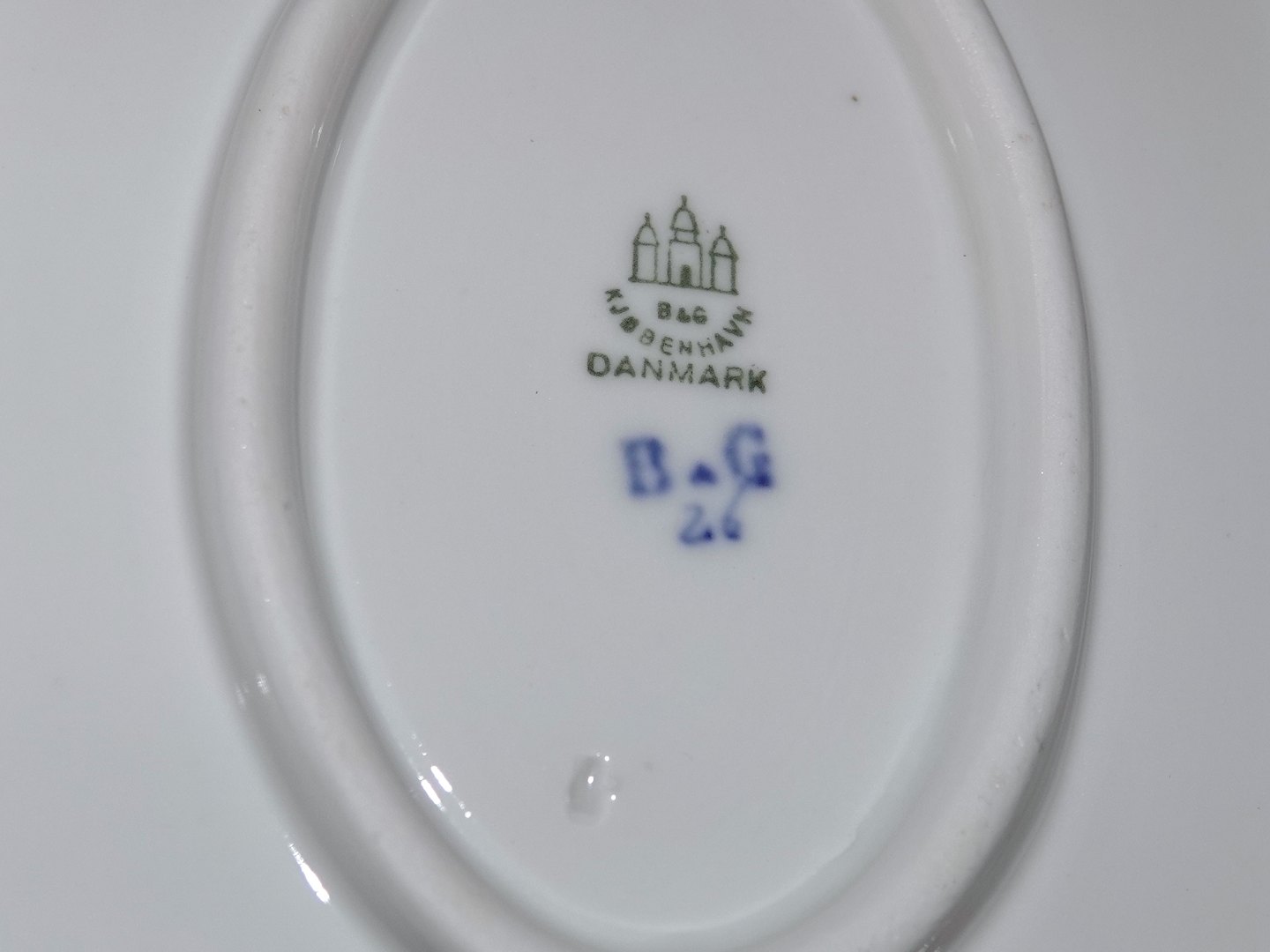 Bing & Grøndahl Sommerfugl, kæmpe stegefad. Af fabriksmærket kan det udledes, at denne er produceret mellem 1915 og 1948. 1. sortering. Længde 51,0 cm. Perfekt stand uden fejl.