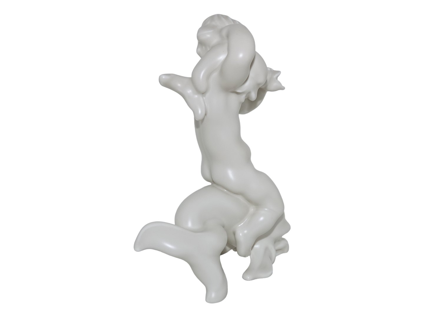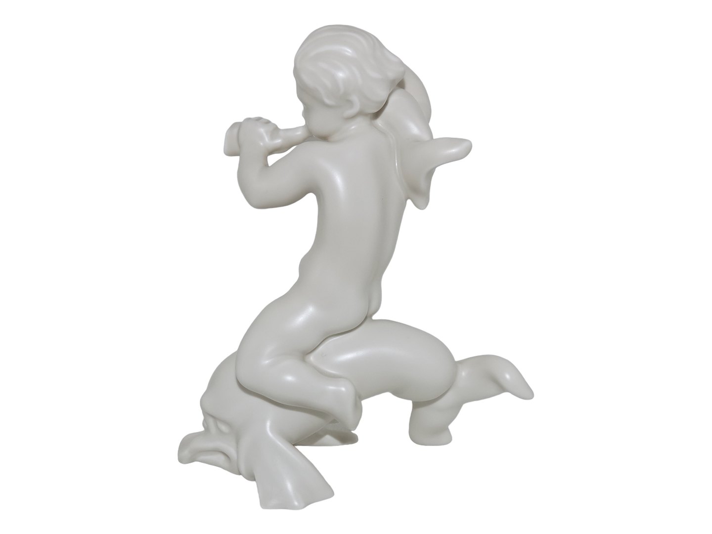 Bing & Grøndahl hvid figur, dreng med delfin udført med mat glasur.